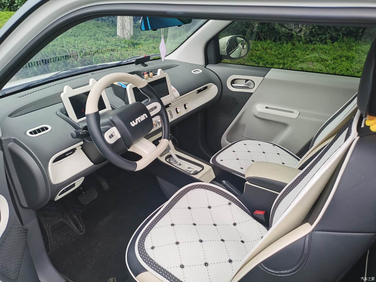 麻雀虽小,五脏俱全,该有的,糯玉米都包含了,还有安全气囊,原来的车内饰比较简单,有塑料感,毕竟价位在那里,我在淘宝上买了内饰,坐垫,安装了中控,手扶箱,改造了一下后,温馨又好看,空调制暖比较好用,制冷慢一点,而且空调位置比较低,容易吹到手,左侧需要关一下,或者买个挡风板,座椅还是比较舒服的。