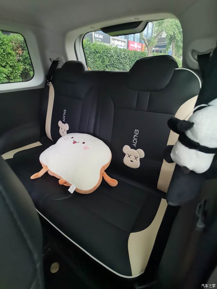 前排空间非常大,家人180的个子,坐里面轻松无压力,女生开就更宽松了,后排也不小,小孩坐后面,再合适不过了,后备箱虽然不太大,但是逛个超市买个菜,放后面完全没问题,第二排座椅可推倒,放东西就更多了,出去玩时,推倒一边座椅,可放孩子的小推车,另一边还能坐人,非常不错。