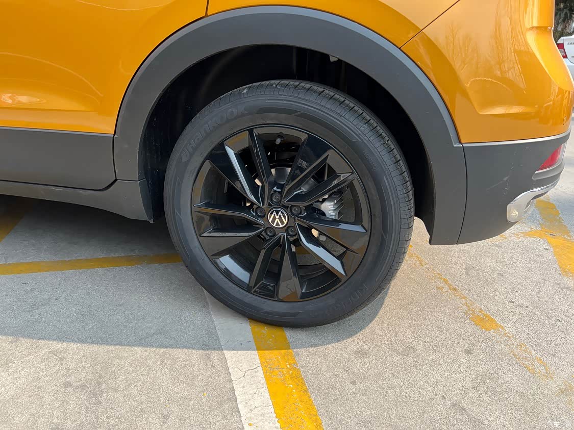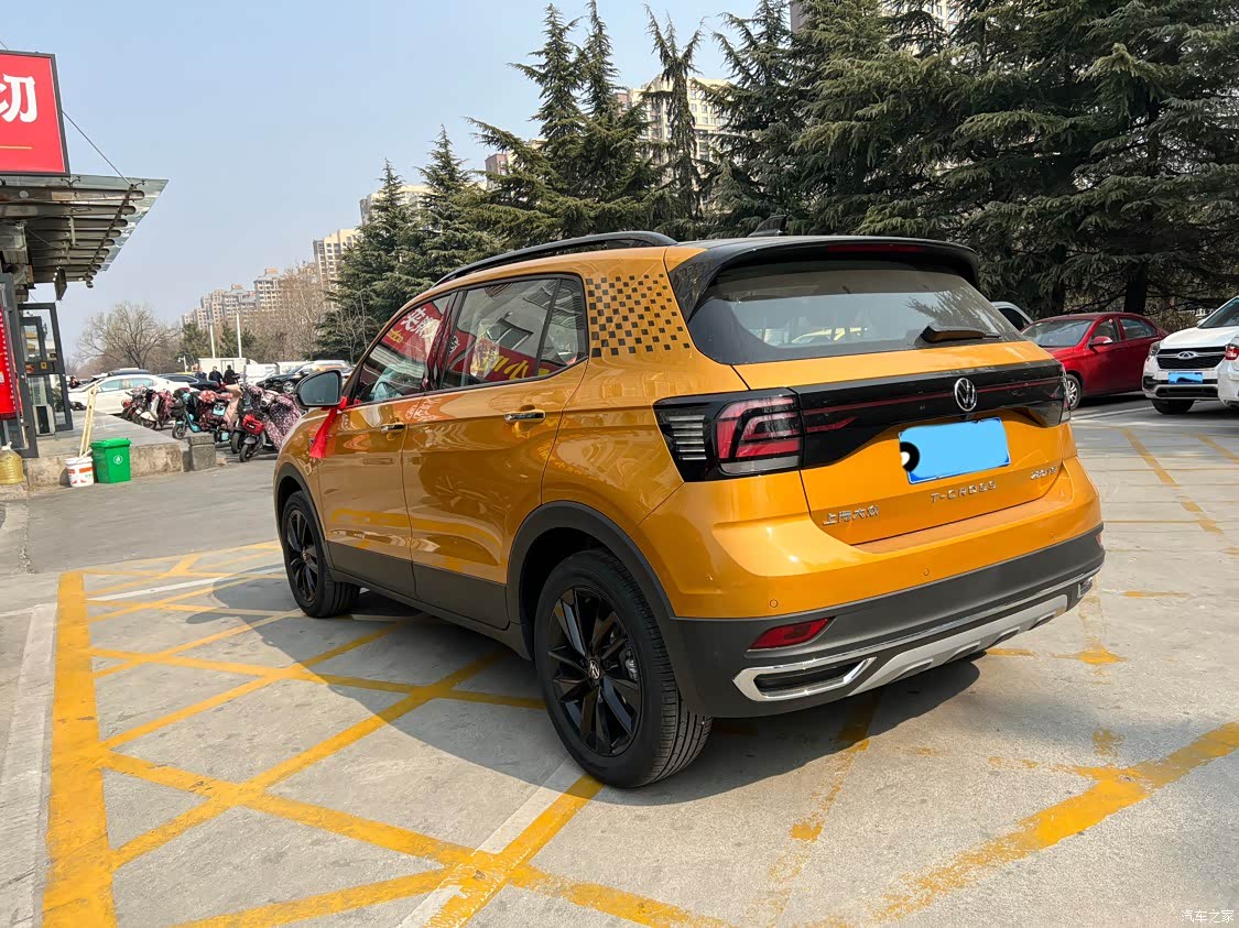金色的车身鲜明富有活力,车身尺寸适中看着灵动,镀铬横拼的中网LOGO两侧略微凸起和大灯融合在了一起,下方银色的亮条贯穿保险杠,让途铠灵动外形又多了些沉稳和霸气,车身两侧的轮毂、后视镜、行李架都是被设计成了熏黑色的看起来运动感满满,尾部贯穿式的尾灯让车身整体看着更加协调,夜晚开启后灯光效果也比较炫酷。