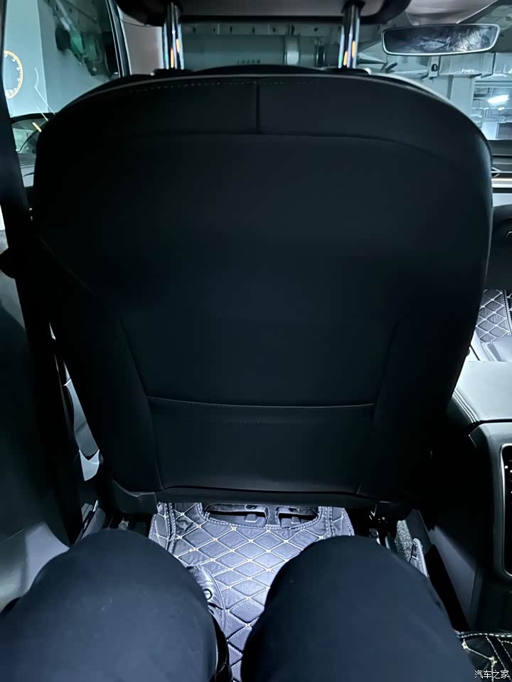 第二排乘坐时不顶头,腿部空间充足,大腿支撑不错,座椅靠背倾斜角度合适,头枕中等偏硬。