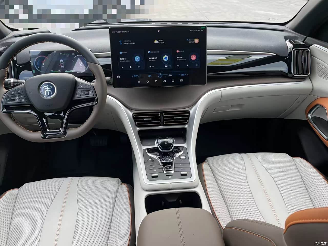 延续新一代比亚迪内饰家族的设计语言,8.8寸悬浮窄边液晶仪表盘,镂空式门板扶手,屏风式矩形出风口,窄边框15.6英寸8核自适应旋转悬浮屏智能互联DiLinK4.0系统,龙脊一体化运动奢享座椅。宽敞后备箱空间。