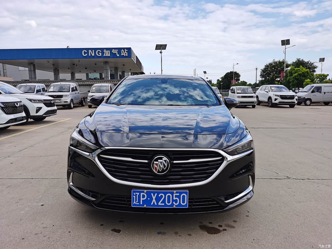 硕大的别克LOGO配合飞翼式格栅一直延伸到前大灯有效提升了前车头的整体宽度,前舱盖上的肋线增强了钣金的强度给人一种安全的感觉。