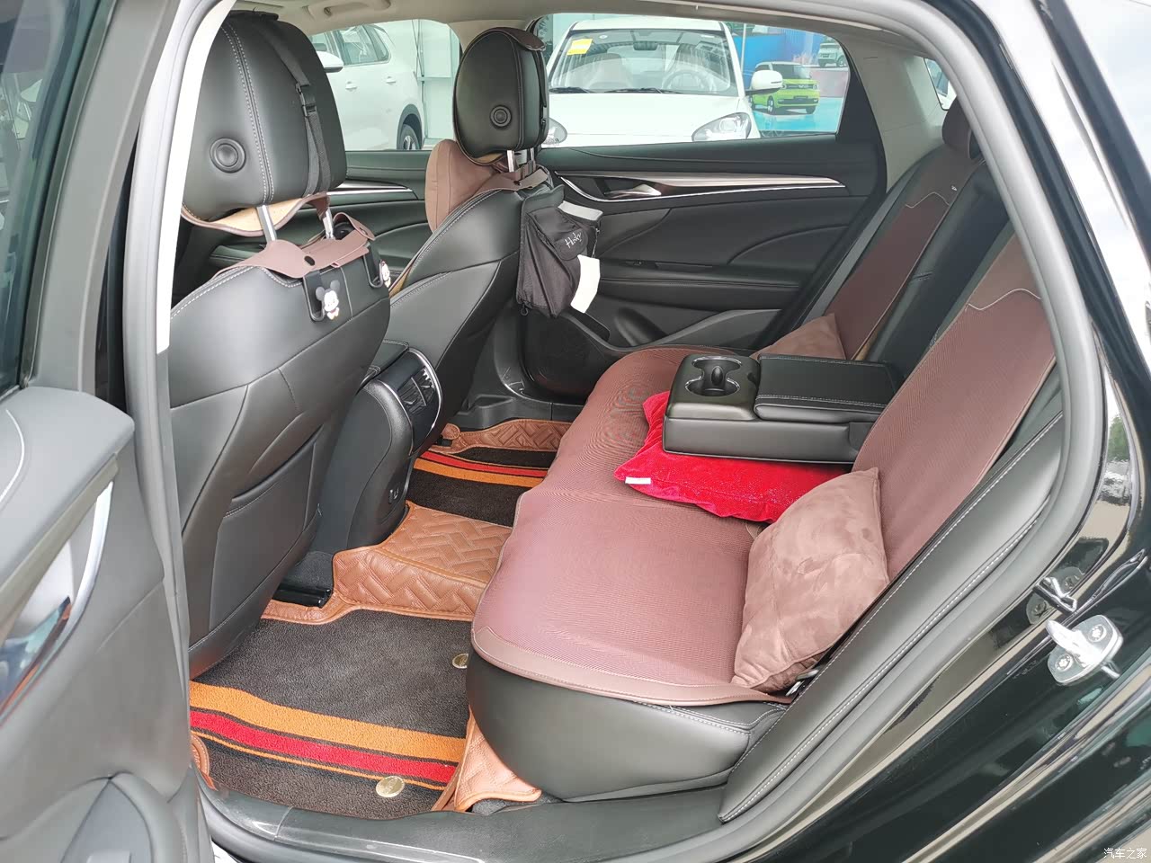 后排腿部空间一个小臂的距离,后排中央地板有一点点小隆起,可以忽略不计。后排头部空间一拳。