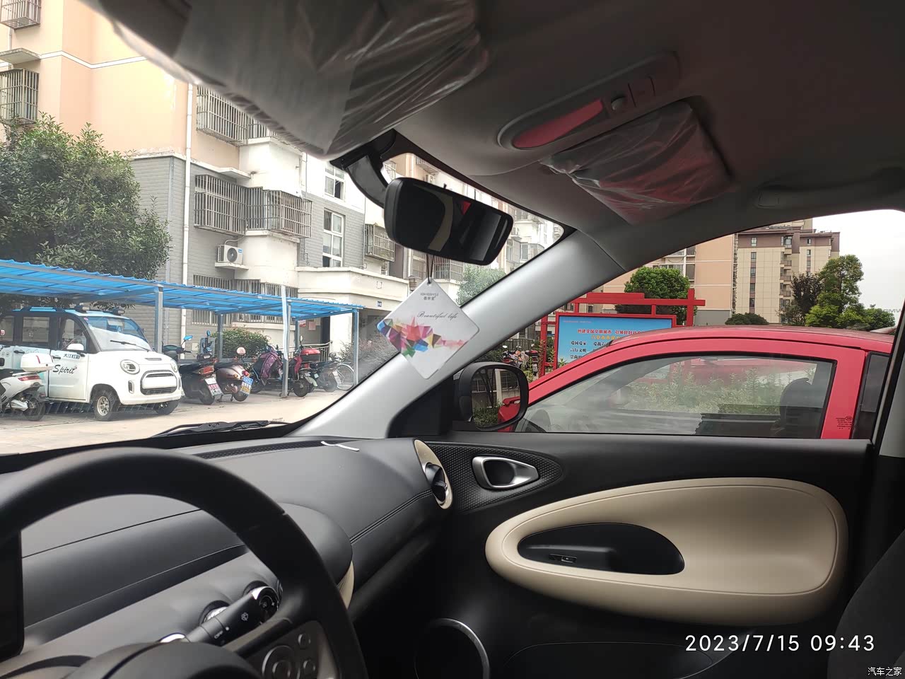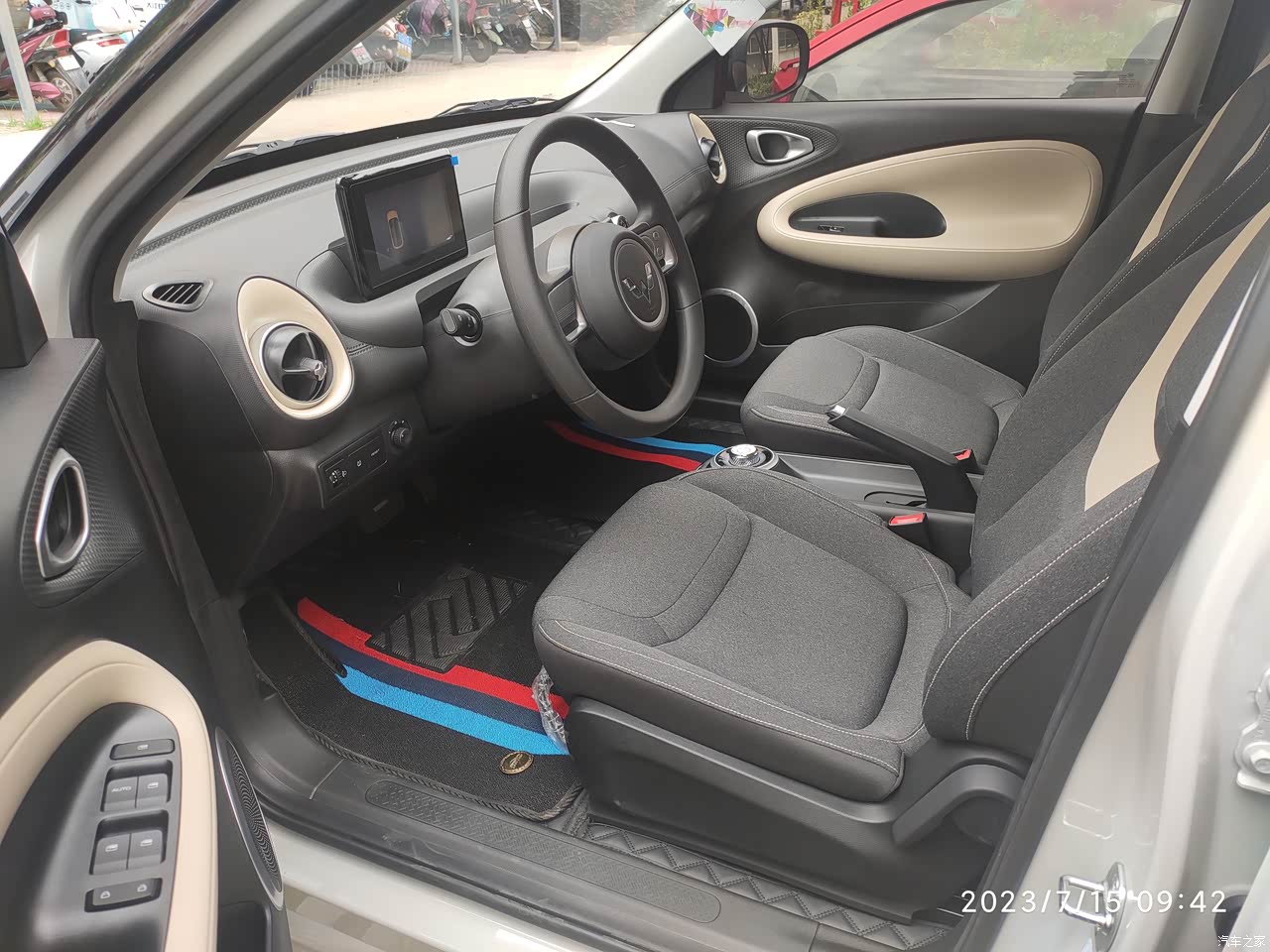 外观当初看上它就是因为颜值,一共四个颜色:奶咖白、曜夜黑、极光绿、冰莓粉 ,我第一眼就喜欢上了奶咖白的黑色车顶的这个款式,我的认知里面是 只要续航够、能开走就行,配置这一块无所谓,所以我选择了快享款的,