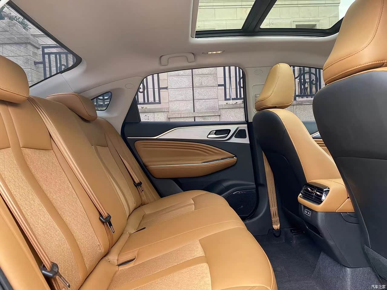 我身高174体重158,坐在前排空间头顶距离车顶还有小两拳的距离,没有丝毫压迫感,腿可轻松活动踩踏板很轻松。坐后排的话,腿部空间稍微紧凑些,膝盖和前排的距离只有三指左右,不会感到拥挤。后排的横向空间还是很宽的,坐三个大人没一点问题。中央扶手箱空间设计合理,日常使用的纸巾、剃须刀都可以轻松收纳。后备箱的深度很深,可以装很多东西。