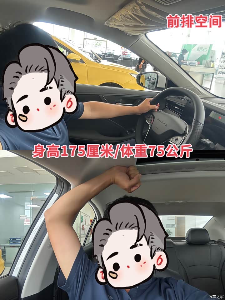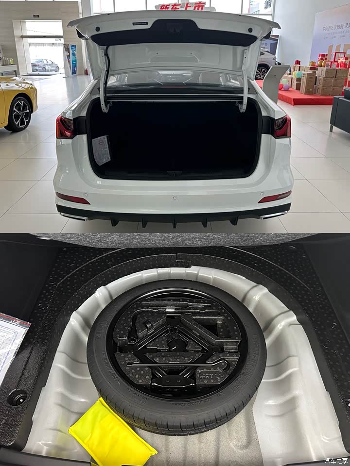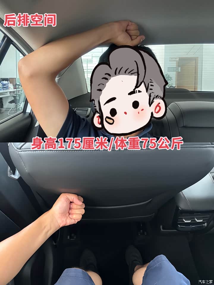 荣威i5的车身尺寸为4676*1838*1498mm,轴距2680mm,这个车身尺寸在紧凑型轿车的这个级别里面算是中等水平,比吉利帝豪会大一些。体验者身高175厘米,体重75公斤,坐进车内感觉还是比较宽松的,后排坐两个成年人比较宽松,如果坐三个成年人的话就会比较拥挤了。前排座椅调整到合适的位置后头部还有1拳多空间,保持前排座椅不动,后排腿部还有3拳左右的空间,头部还有1拳。 i5的后备箱有422L的容量,在后备箱底板下面还有一个非全尺寸的备胎,非常实在。
