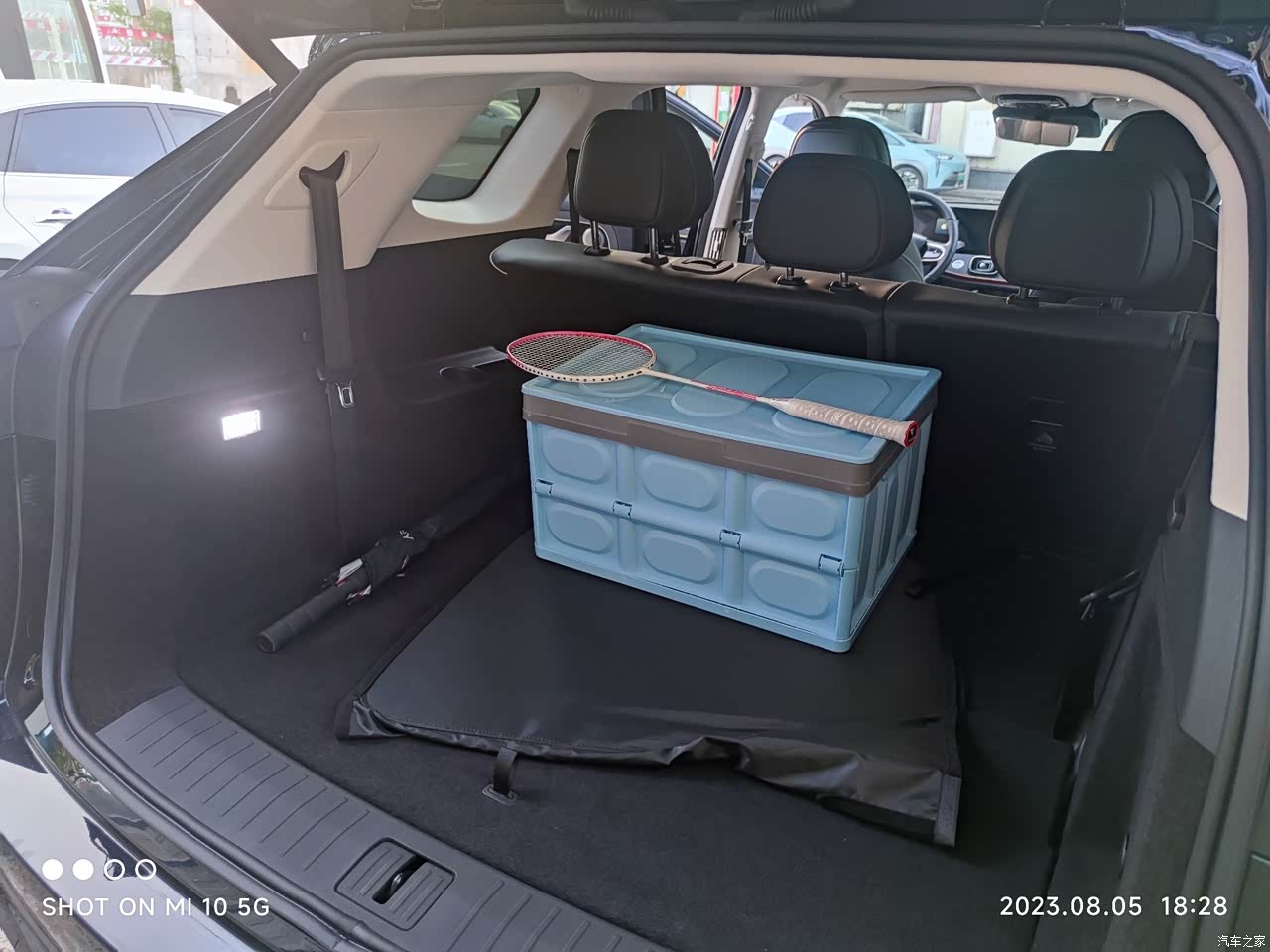 这是7座的后排空间。第三排座椅放平相当于大五座,如果二排放倒可以放比较大的物件