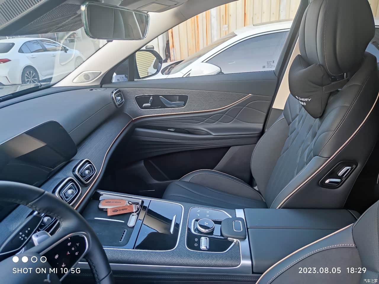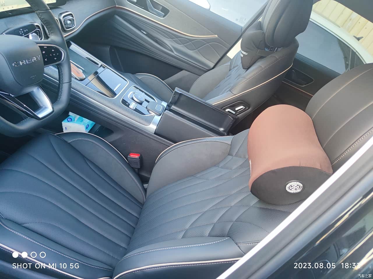 座椅采用打孔仿皮设计,门板和中控多个地方采用软皮材质包裹,看着档次不一样。大范围的软包比某些合资塑料强太多