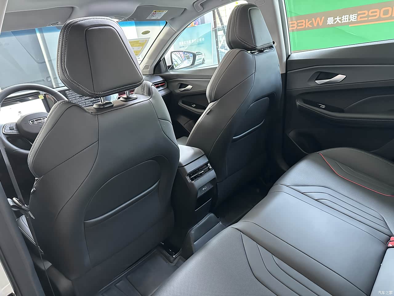 内饰部分也很ok~规整的横向视觉风格12.25英寸液晶仪表盘12.3英寸中控屏组合的悬浮双联屏操作简单简洁的设计也蛮高级的~而且前排座椅加热,多功能皮质方向盘,全自动恒温空调系统,空气清新系统 花粉过滤,后排座椅4/6分体,空气质量管理加负离子发生器。皮质的方向盘握在手中,手感挺可以,还可以上下进行调节,还是多功能的,可以切歌,调大音量调小音量都可以在方向盘上完成,这几点对我来说比较实用,开车的时候不用再去操作屏幕了,快捷又方便。前排座椅可以加热,说起座椅,它还是运动风格的座椅,视觉上很运动,很好看。