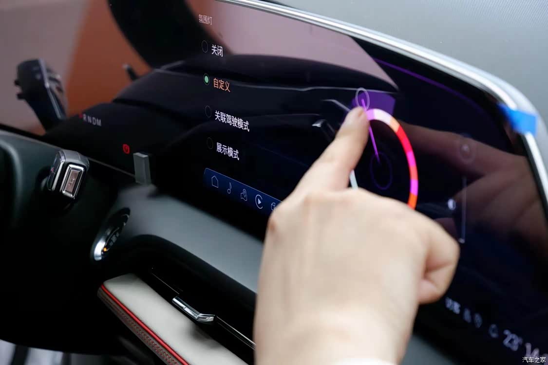 内饰的颜色有几种选择,我选了比较耐脏的黑色系,有点赛车风格,其实它是黑白相间,然后有红色线条的镶边勾勒,我觉得这个红色就用的非常好,让人一进车里,就被惊艳到。再加上这个33英寸的超大环形中控屏幕,操作起来非常顺畅,支持Carplay手机连接,所以可以语音控制,还很灵敏。这个屏幕无论是看导航还是看电影,都是超棒的!我还喜欢它的旋钮和按键设计,看起来质感都特别好。AKG的音响有点厉害的,特别是全车是带有多层隔音玻璃的,所以在车里听音乐的感觉特别好。还有大大的天窗,氛围灯的颜色还可以自己调节,总而言之吧,这个内饰着实惊艳到了我!