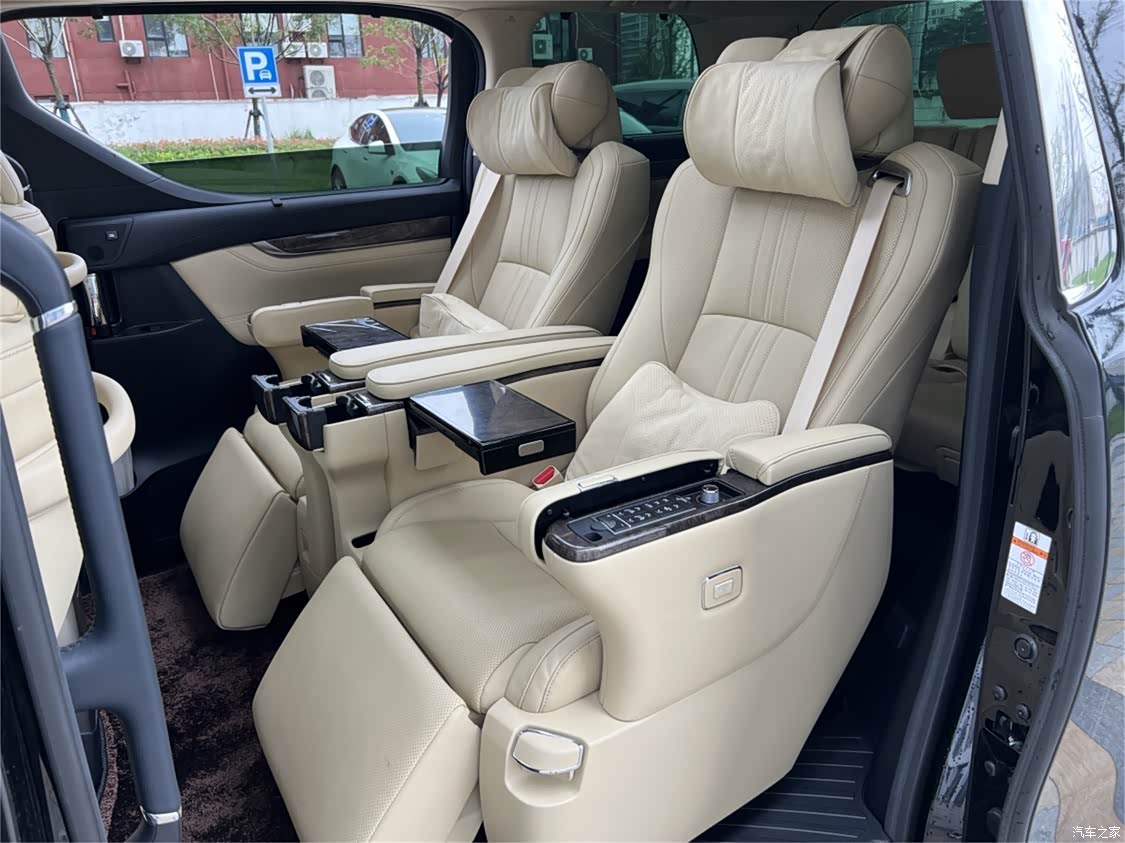 去年二胎的到来,加上事业也是在上升期,所以想换一辆MPV,来取代现在不能满足需求的家里的SUV,丰田埃尔法在MPV车型中一直是神一样的存在,不管是明星的保姆车还是商务人士的专用车,它的口碑还有保有量都是很好的,于是我也入手了,最满意的就是它的空间了,5米左右的车身和3米的轴距在同级别车型中也是佼佼者,车内不管是横向还是纵向的空间都异乎寻常的大,第一排的座椅坐姿就很高,驾驶视野就很开阔,没有视线盲区,我自己身高181厘米,体重165斤体格也算蛮大的,在驾驶位腿部和身体都能自由灵活的转动,头部和车顶还有一拳距离,而第二排座椅的乘坐感真是出乎意料,座椅又宽又大,包裹性和支撑性都很强,座椅非常的柔软舒适,说达到了航空头等舱的水准也不为过,我老婆也经常在座椅上小鼾休息,有时候我的客户也在翘着二郎腿和我商讨合作,并且搭配了腿托小桌板等,缓解了行车疲劳,我们一家出门自驾游如果累了就把第二排座椅放平然后睡觉休息,第三排的座椅也是可圈可点,座椅也是又平又宽,不像有的SUV号称7座,结果第三排就搞个小板凳,真是不知所谓,埃尔法的车内储物空间设计布局合理,我的小物件比如手包,卡包,充电宝,文件袋,老婆的化妆盒等等都能归纳好,后备箱容积很大,我出差或者家人自驾游带着几个行李箱还有孩子的玩具等能放进去。