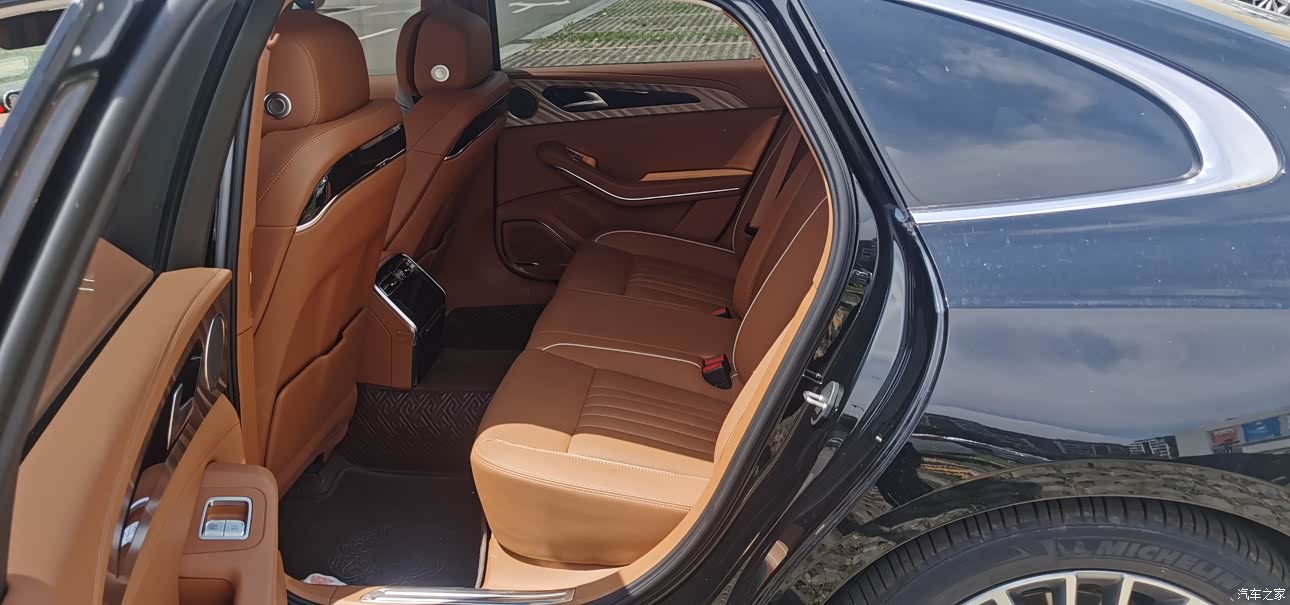 新车味道不大,但是我还是开启了空气过滤装置,座椅材质为全真皮,自带电动座椅记忆功能,不光能分区控温,还能自由调节腿托腰托的位置,自带加热、通风、按摩功能。不需要选配,但给到的体验已经是极致,无论是座椅的做工还是皮料的选择,不得不说都是同类车的前茅!