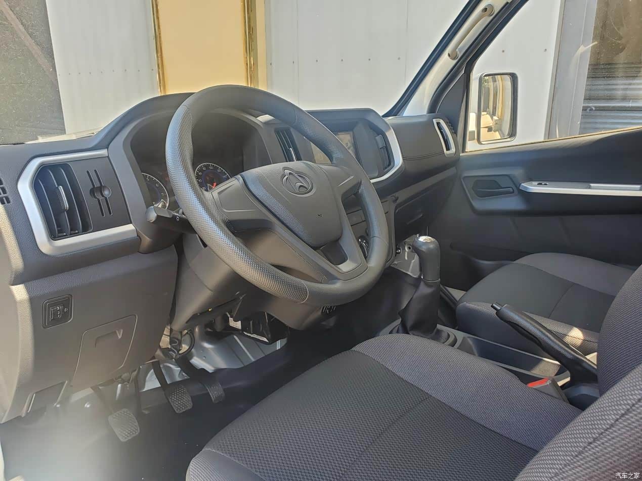驾驶舱的空间一般般吧,坐着不拥挤不憋屈,但也算不上宽敞,只能说够用。后斗空间比较大,装货能力不错,大小瓦片都能装,各种材料也不担心体积太大,厂里的各种品类几乎都能装,拉货完全没问题。
