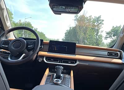 方向盘大小适中,抓握起来手感不错,关键是转动的时候力道还挺轻盈的,这么大的车开着也没有吃力感啥的。另外它的动力也很充足,起步速度快,中后期加速感也好,深踩油门之后可以体验到明显的推背感。