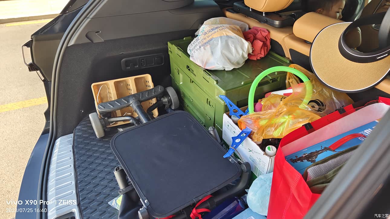 后备箱很大,以前的马自达CX-5空间捉急,随便放个儿童车的宽度基本就不行了,现在看图就知道,明显还能多出一个箱子的距离。什么矿泉水杂物轻轻松松放下。看着乱?乱就对了,有孩子以后后备箱永远这样,要带的东西太多了。现在空间大了以后再塞个儿童自行车都轻轻松松,再也不焦虑行李箱了。