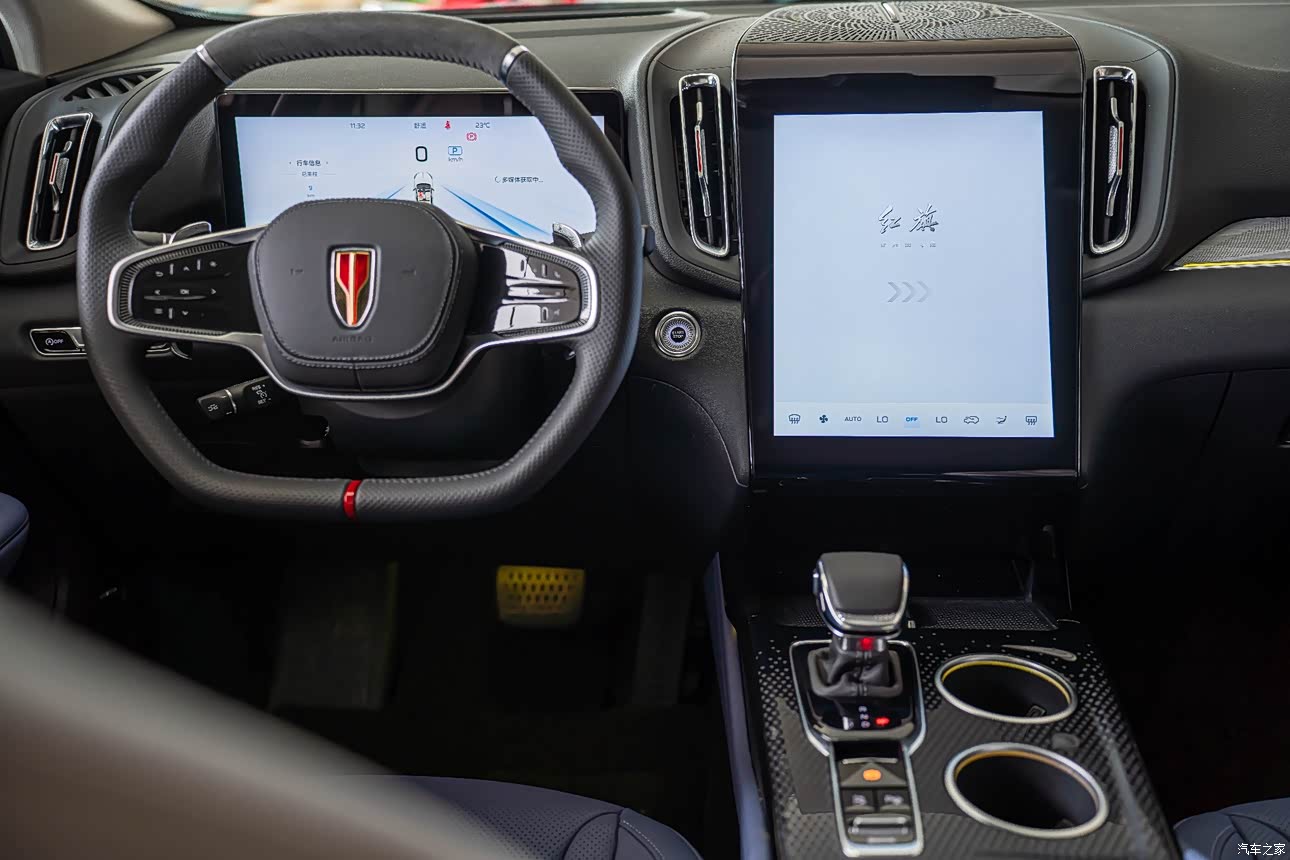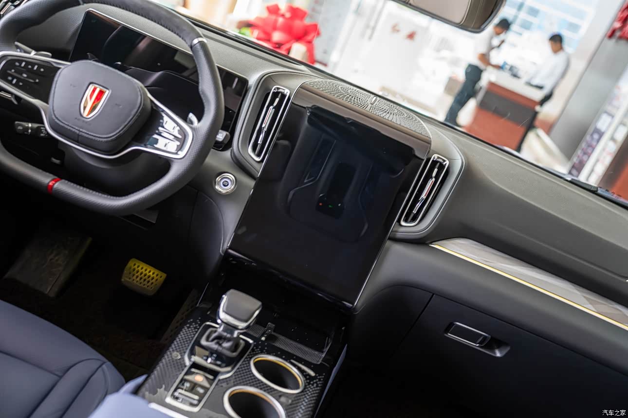 整个车身形态饱满敦厚,巨的直瀑式竖状前格栅占据车头的视觉中心,标志性品牌logo从车头自然延伸至格栅中间位置,配合两侧镀铬饰条共同延长视觉效果。格栅两侧同样加入宽大镀铬金属饰板,并与不规则大灯连接在一起,努力增加一些活泼气息。采用撞色设计的车身饱满紧致,车顶前高后低,整体呈下降态势,前翼子板处加入专属红旗标识,更有品牌归属感。1.5T车型配备18英寸轮圈,2.0T车型则有19寸和20寸两种可选,低风阻轮圈造型简约,更多起到的是降低风阻优化操控的作用。车尾轮廓上窄下宽,扰流板继续延长车顶视觉效果,细长刹车灯带被集成在中间位置。尾灯与前大灯采用同一种设计,另外由贯穿灯带连接在一起,有助于提升车尾科技感,熏黑下包围表面加持贯穿饰条点缀,同样是在为提升运动气息而努力。