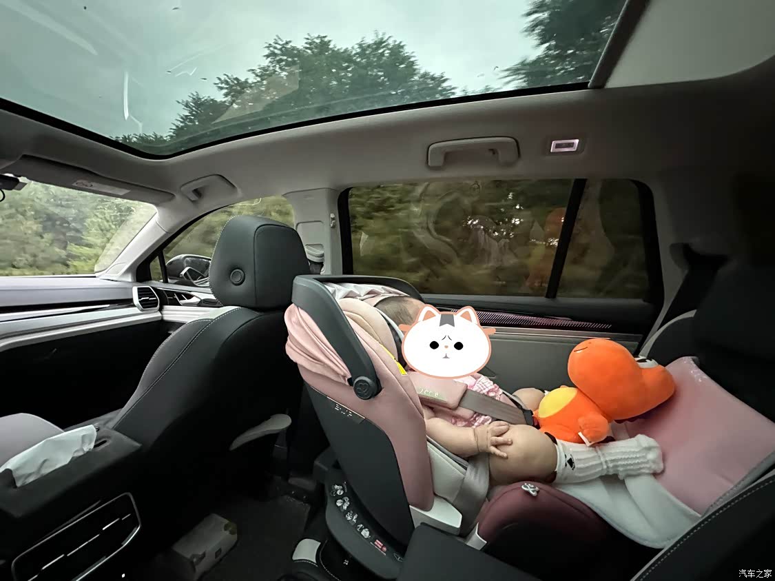 车子像我们这样作为一个大五座SUV使用还是没有问题的,空间是绝对的够大,不单乘坐空间大,储物空间也大也多!我开车习惯躺着开,所以座椅是很靠后的,但是后排坐人的话还是很宽裕的。第三排的两个座椅放倒拉着孩子的婴儿用品随便装,但是如果坐6-7个人就会很尴尬,临时短途还可以,如果路程长一点后排的两个座位太痛苦了!