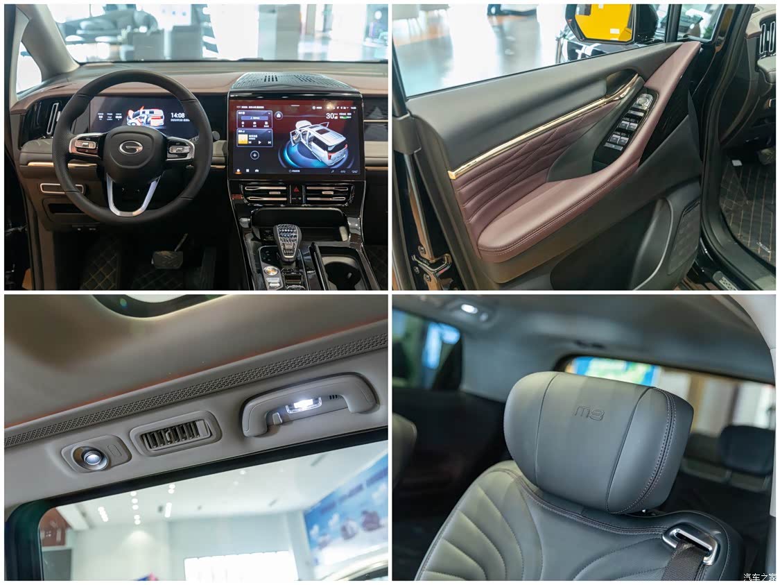 M8大师版的内饰也同样进行了升级,有不少宗师版的影子,不过还是有所区别。M8大师版内饰整体调性还是偏向豪华与优雅的基调,不过依旧是采用家族式的设计,整体感觉商用和家用兼备。中控方面搭配14.6英寸中控屏,并与换挡面板、中央扶手连成一个整体,显得时尚大气。副驾驶座仪表台设计灵感源于天鹅的羽翼,增加了优雅的设计元素,让人看得很舒服。虽然多媒体系统搭载了8155芯片,常规的娱乐功能和车辆信息设置也都能在上面实现,但是车机的响应勉强过关,一些操作逻辑和语音控制有待提高。车内的用料比较扎实,二排还配备了阅读灯以及新增了2个电源接口,第三排座椅可以前后移动,都是不错的设计。