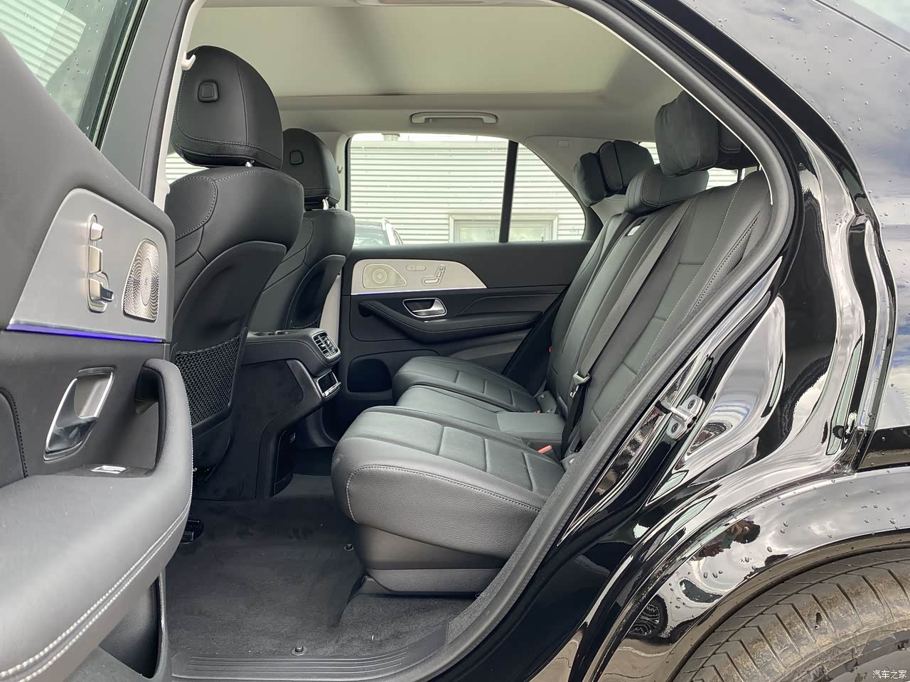 车内空间⭐⭐⭐⭐⭐ 对于中大型SUV来说,GLE空间自然是很宽裕的,毕竟不是紧凑型车或是A级、B级轿车,只要不是体型过于高大壮硕的人,GLE都能够容纳的游刃有余。 从空间上与奥迪Q7对比,两车相较差别不大,在空间方面双方打了一个平手。 模特身高175cm,自述坐进后排感觉“很宽敞”,头部2拳,膝盖前部3拳,坐姿没有拘束感,且后排座椅可以调节,角度非常合适。 后备箱空间 ⭐⭐⭐⭐⭐ 在后备箱储物方面,奥迪Q7与奔驰GLE仍然不分伯仲。不放倒后排座椅的情况下,GLE全系后备箱空间为825升,座椅放倒后最大可达到2055升,也就是说足有2立方米的大小。寻找参照物的话,也就是2个小区内的垃圾桶的大小,这么说就直观不少了吧!日常出行一般情况下,咱可拉不了这么多东西吧😂足够用了。