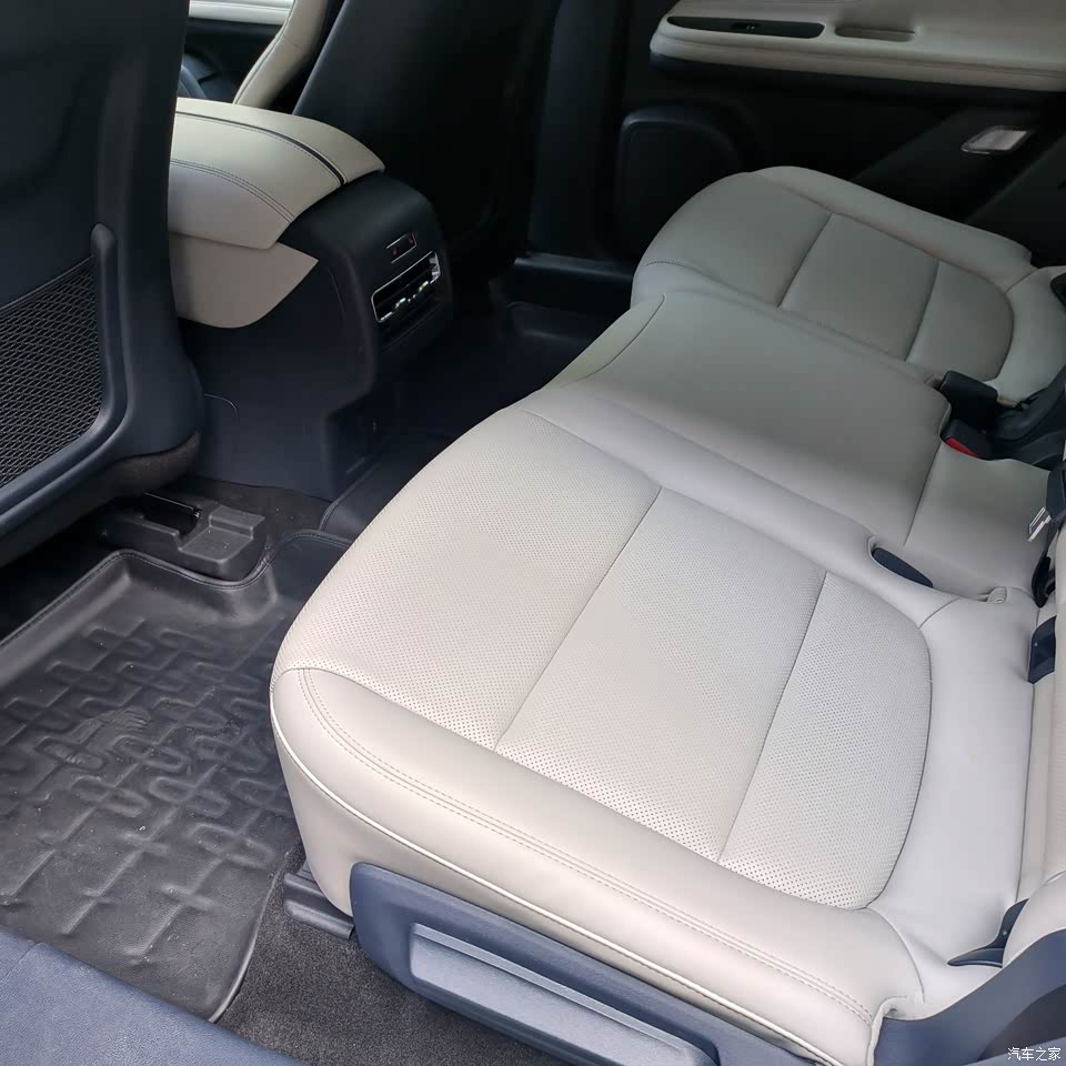 这车在同级别的车子里面,空间还是非常大的,二排在它加长座椅的情况下空间还是非常充足,后排座椅可以前后调整。得益于这车比较宽,这车在后排的这种座位的宽度也是非常足够的。包括说他后排地台的这种凸起,也是几乎是没有的,无论后排是坐三个人还是两个人都是可以坐的非常舒服。另外,尾箱空间也是很灵活。之后家庭用车我觉得应该也会特别方便。