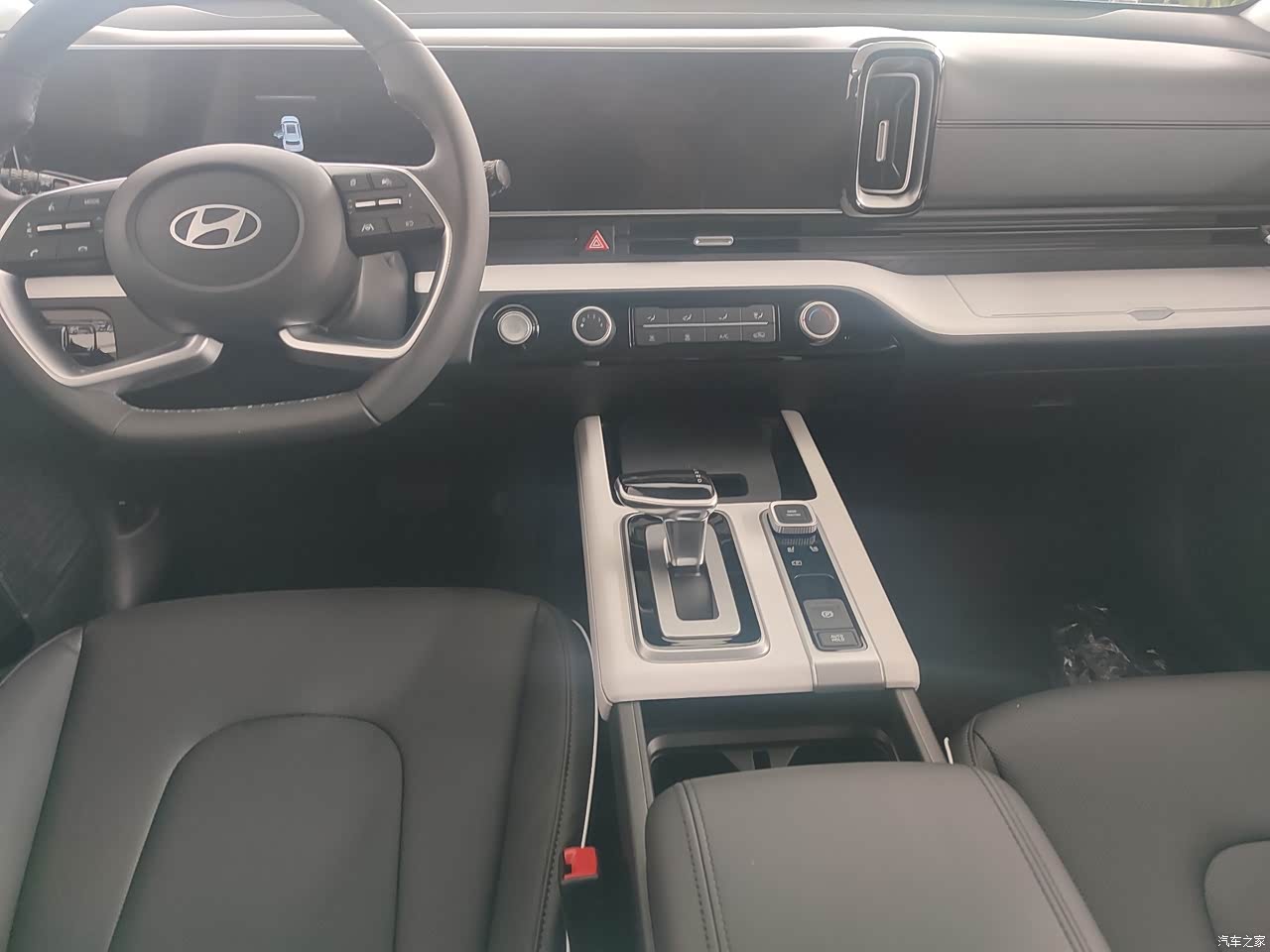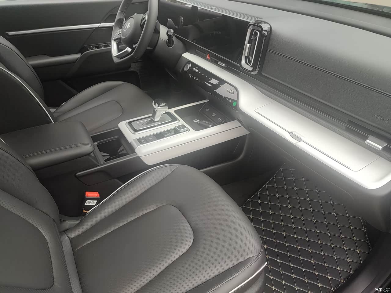 内饰还是不错,双拼色设计,不沉闷,还有一些比较有意思的设计,比如这个平板夹子可以方便小孩坐后面看电视,比较有温度的一个设计