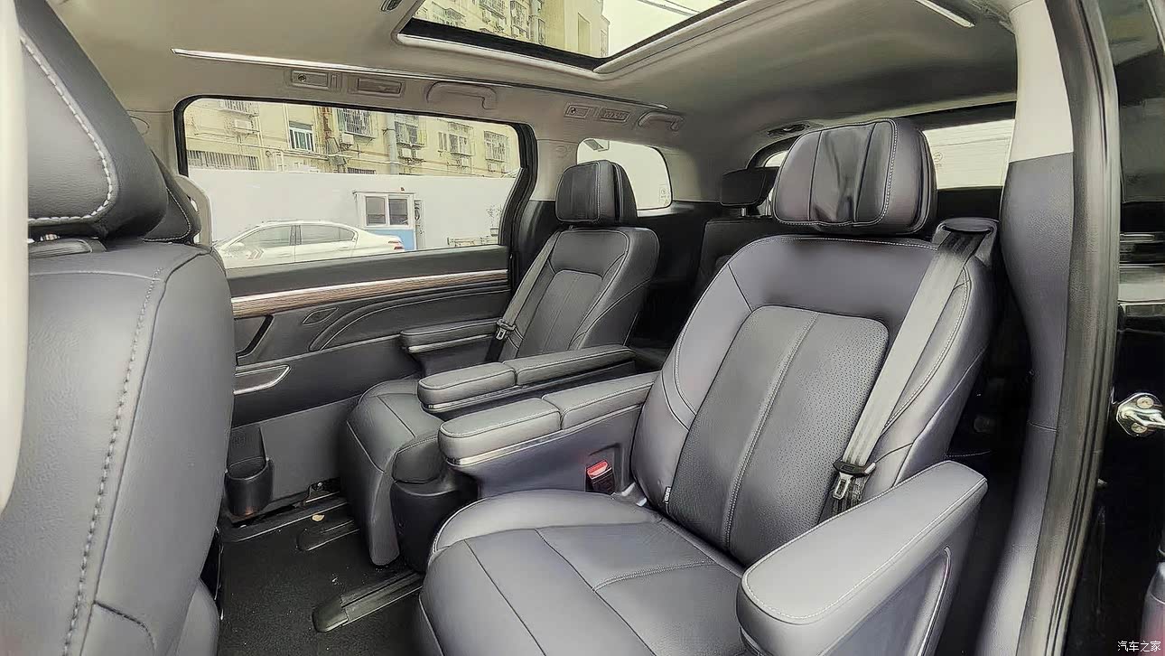 空间不错,中间换挡扶手箱大气,我喜欢。主驾空间宽敞,座椅调节流畅,副驾调最高和主驾最高不是一个高度的,感觉副驾要低一点。第二排意料之中了,国产性价比没得说,唯一觉得有点小问题的就是通道,稍微再宽一丢丢更好。最后排空间并不将就,成年人坐也绰绰有余,自从买了M8,一家人出行都很舒服。后备箱小了点,拉大件除非牺牲第三排。