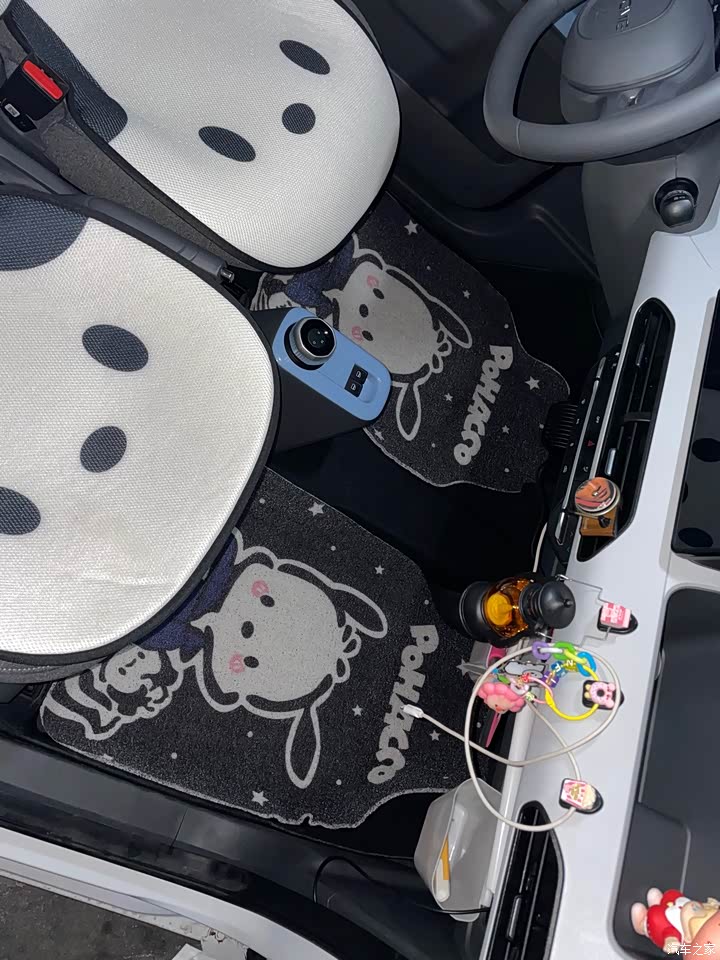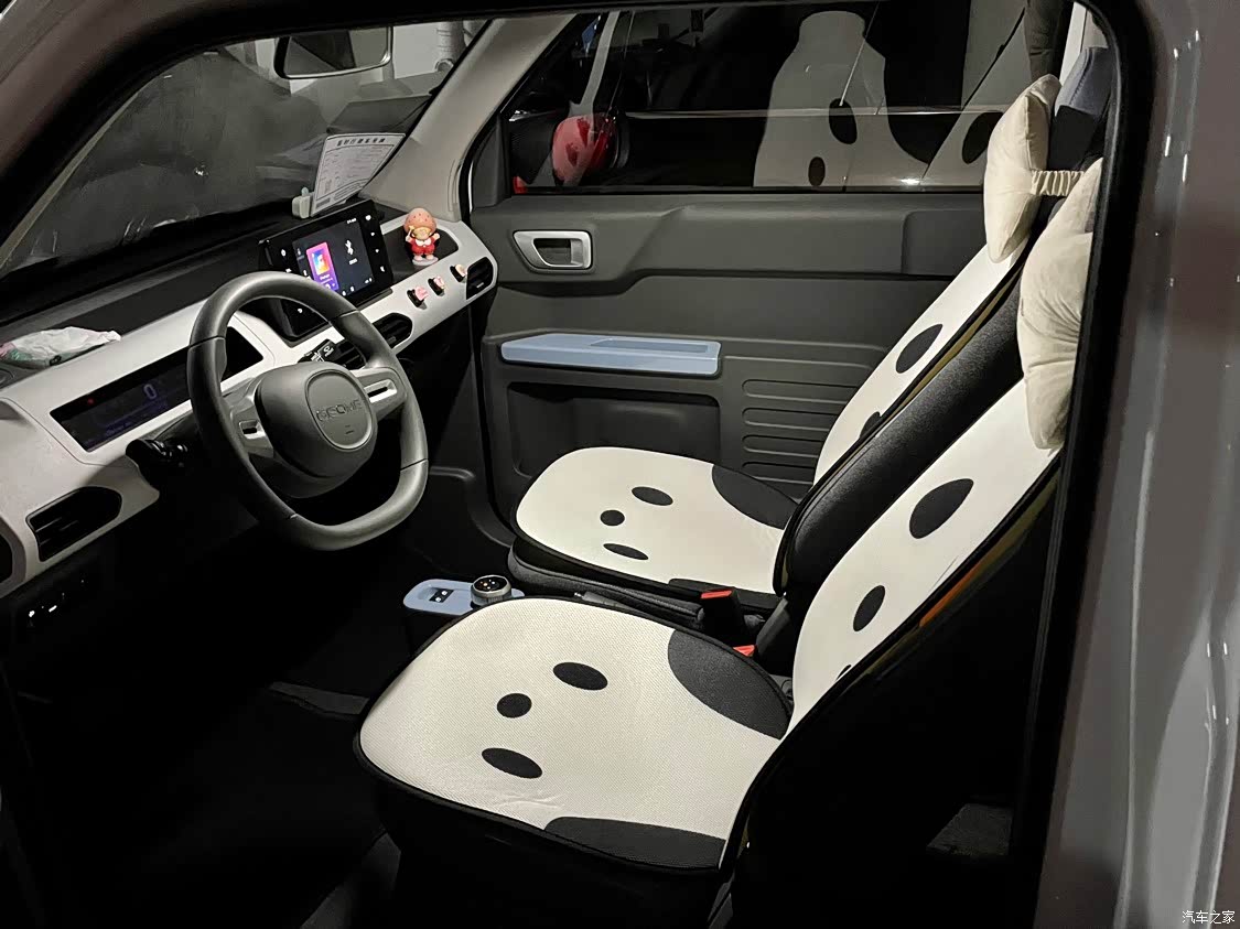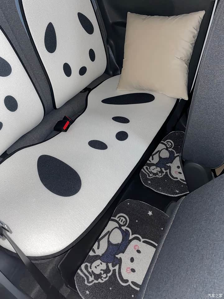 内饰方面 车内其实收纳空间很多 简约大气 粉色车的内饰会更好看 白色车的座椅颜色就有点emm了 但是自己改造一下会很好看 很多车友选择了全包的皮座椅套 我自己选择的是半包座椅垫 更方便清洗 车内再装饰点可爱摆件 小车车的精致可爱感直接拉满