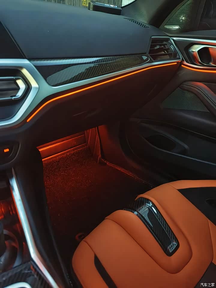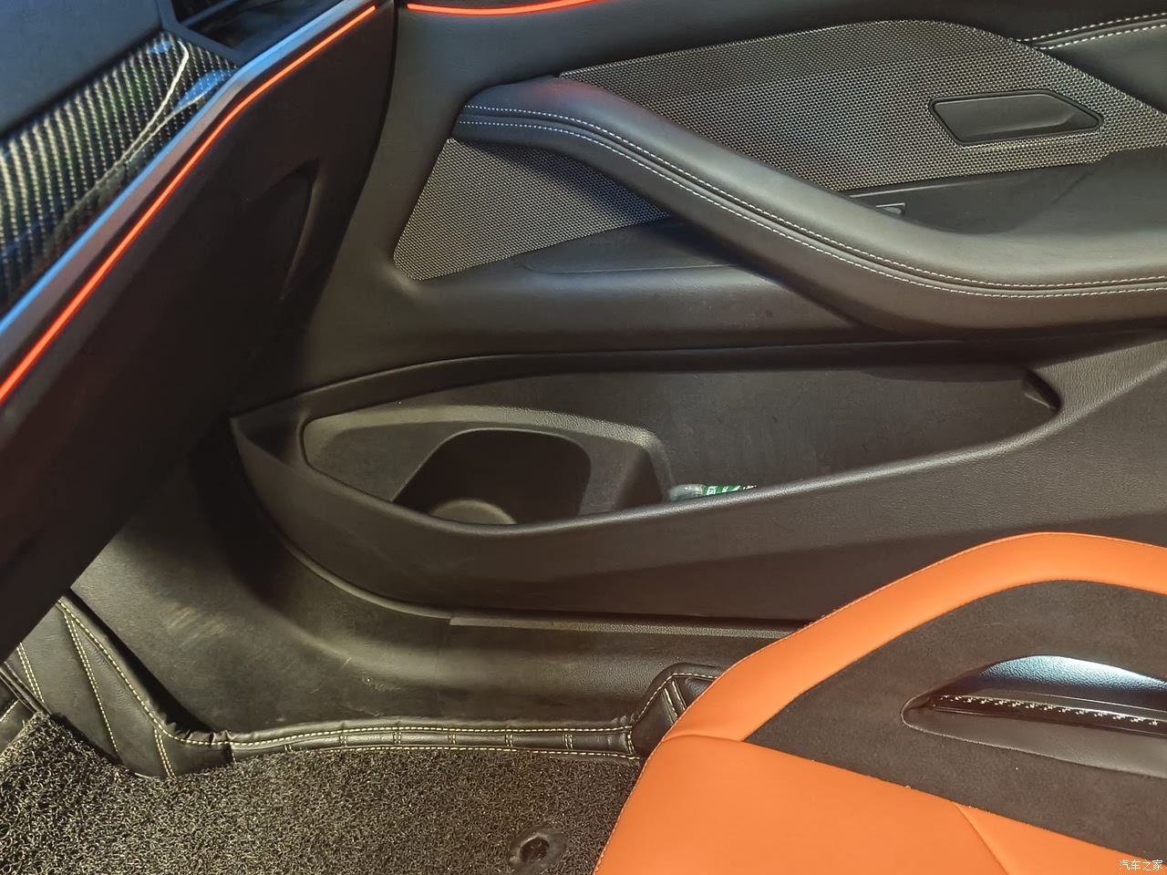 内饰总体感觉还是中规中矩吧。豪华感肯定不如奔驰。大量的碳纤维件还是很吸睛和有信仰感的。后排真皮座椅相对前排桶椅舒适不少。悬架即使调到最软依旧邦邦硬。空调开始不怎么会调节,后来才知道在温度规则里把格子向左调两格就制冷多了。隔音方面毕竟是无边框车门和以前的ATSL双层夹胶隔音玻璃加主动降噪无法相比的。