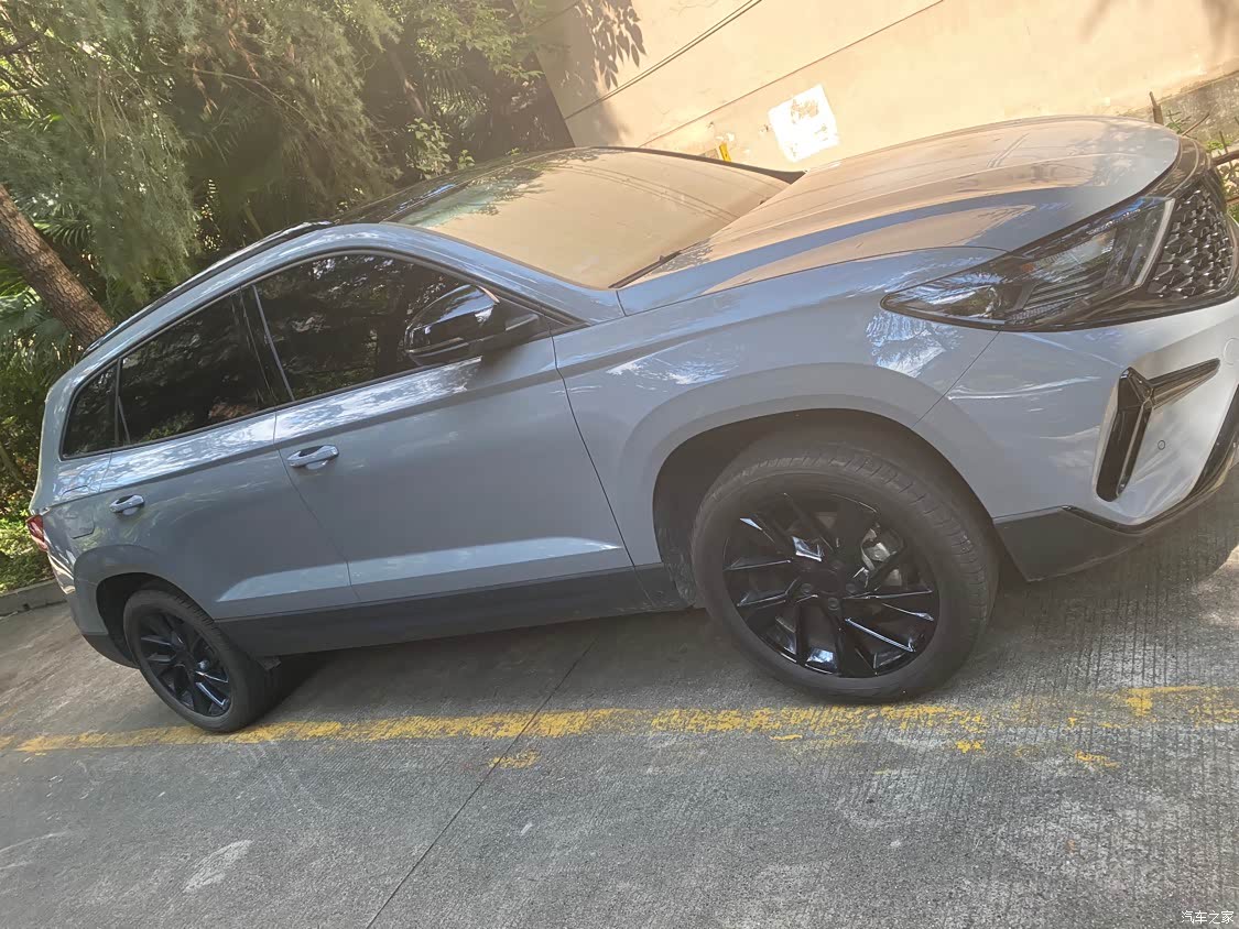 外观我选的是高光星河灰,非常漂亮了,我非常喜欢这种熏黑件,给人一种年轻和动力,前脸看上去我就一眼相中了,搭配LED日间行车灯,正面看上去非常的漂亮