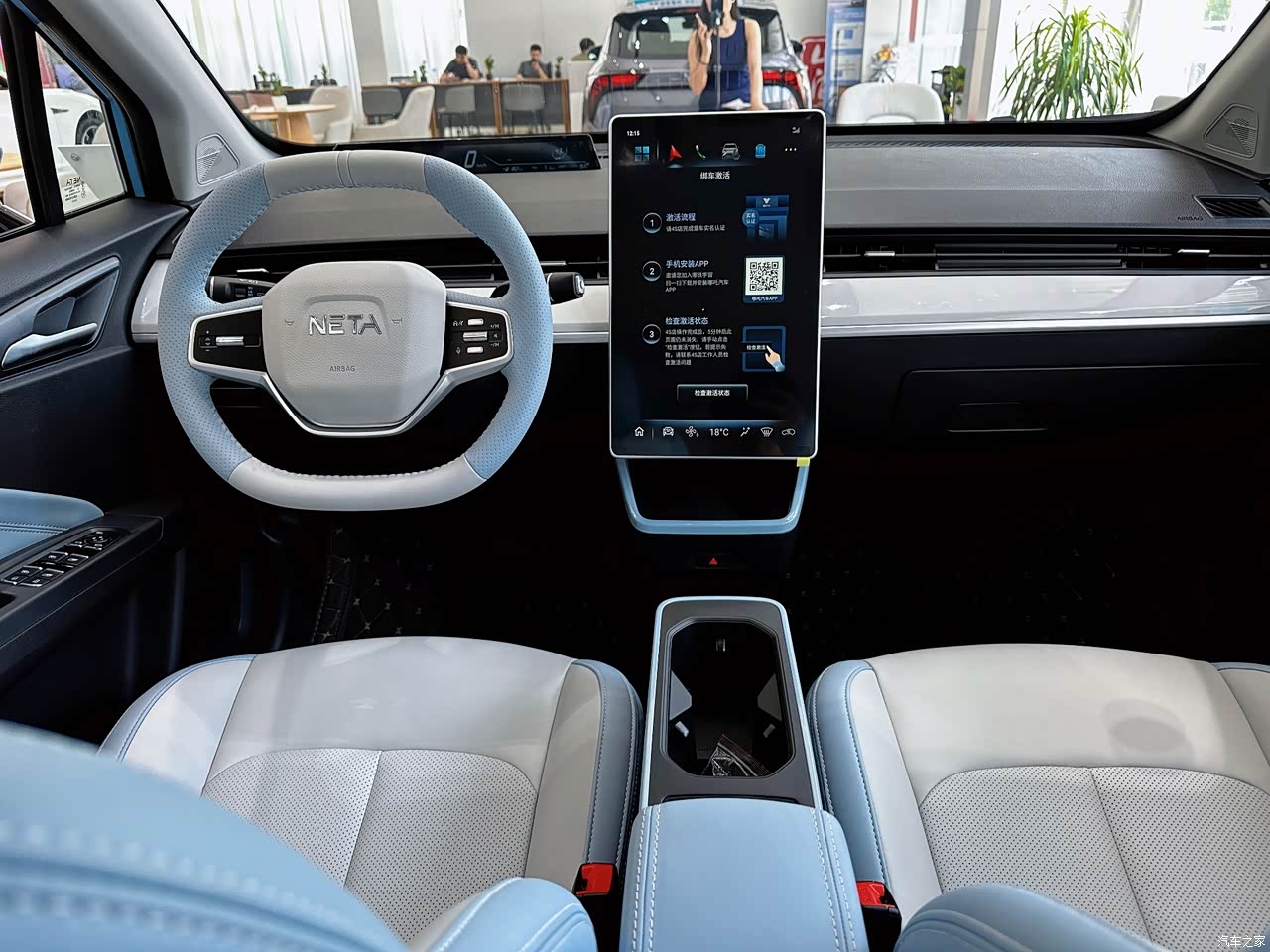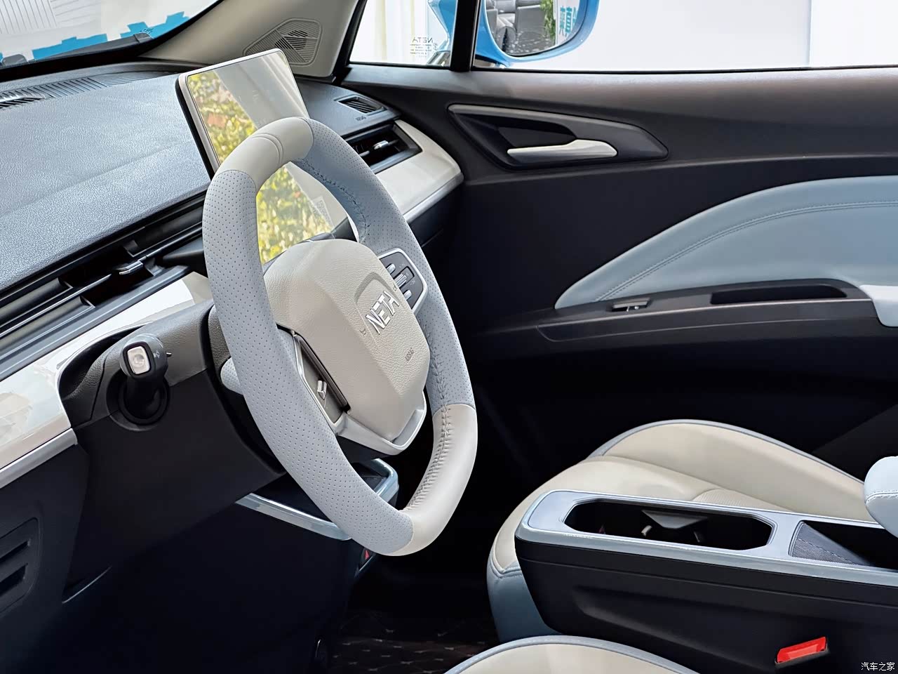哪吒AYA的内饰也延续了哪吒V布局设计,车内用了双辐式多功能方向盘,还增加了自适应巡航的控制按键。车内的这个14.6寸竖向中控大屏用的是八核7纳米车规级MT8675芯片,这样竖屏的大屏的实用性更加强另外,车内的空调出风口也是采用贯穿式设计,以及怀挡式换挡机构。车内内饰感觉就是简单又有科技感。这台哪吒AYA的内饰的雾蓝白和看起来也是个性又很有质感,这样也是更加符合年轻人的审美。
