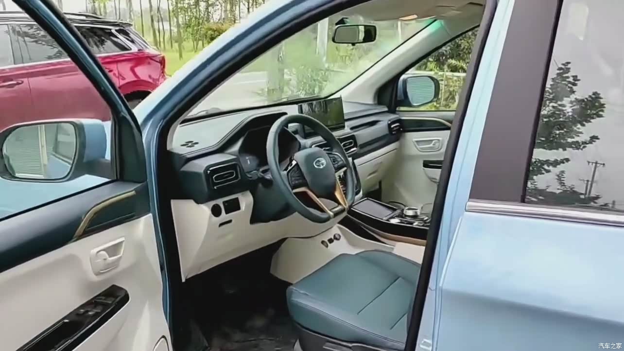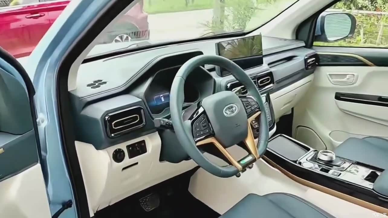 内饰我感觉很合我心意,蓝加白的配色这个颜色座椅也很舒服,还有车内多处都是软包用料很实在。方向盘也是我手有汗也摸着不滑手感很好。
