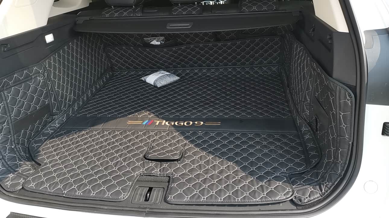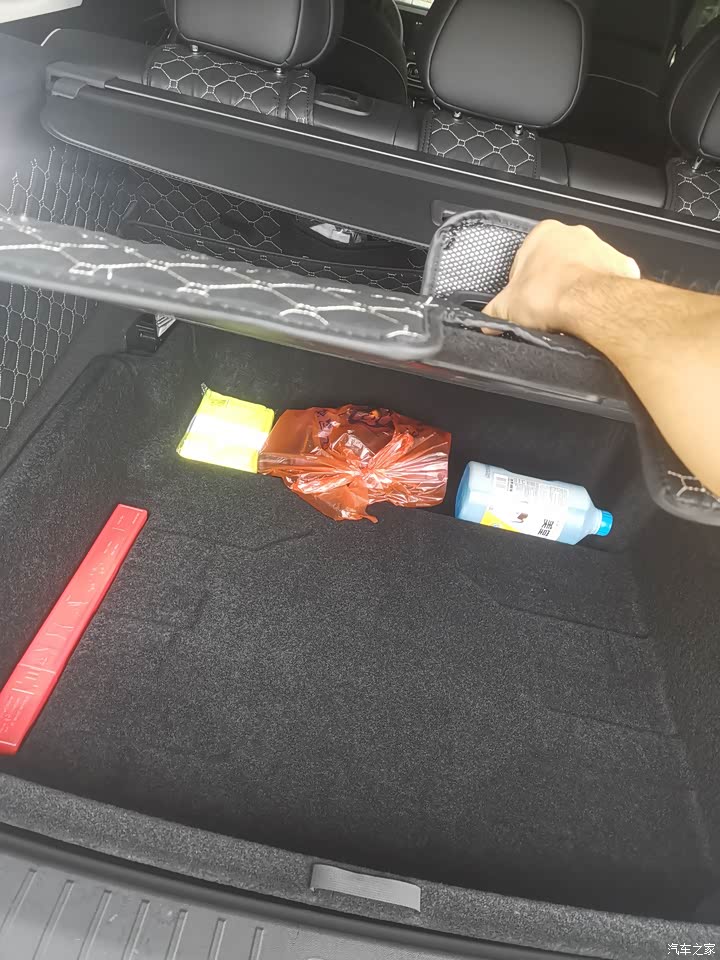 后备箱也够大,我买了全包垫,垫子下面还有两暗格,中层储物格,很大,最下层暗格是备胎