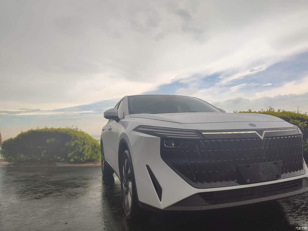外观承接启辰大V燃油版,但是在细节方面加入了更多电车元素,彰显这是一台插混车的存在。
