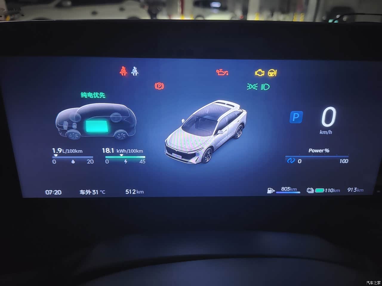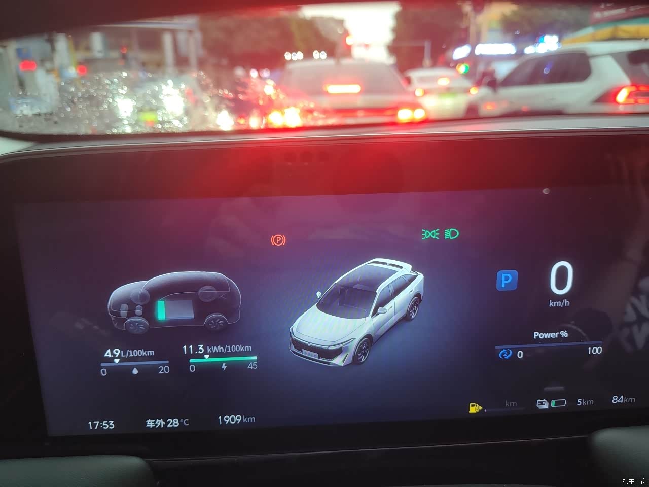 春节高速跑了一千五百多公里,就综合写一段吧。这次春节跑高速广州境内行驶的一直比较安逸,选择的是激情模式,超车动力上来很快,底盘稳方向盘重,深踩油门发动机响应速度很快,仪表上显示发动机动力电池共同工作,所以油耗被平均下来,表显6个油,电耗15。进入江西气温骤降,又遇到雨雾天气,开暖气后油耗在6个左右,比市区还要低。前风窗起雾后,打开除雾功能,除雾迅速,只是风扇满转声音比较大,也能接受毕竟安全第一位!进入湖北境内气温来到了零下,已在服务区提前调低了轮胎的气压,车在雨雪路面行驶感觉很稳,偶遇几次堵车路段,切换至纯电模式,合理利用能量。综合下来满油满电可以跑750公里左右,比夏天跑高速少了一些。
