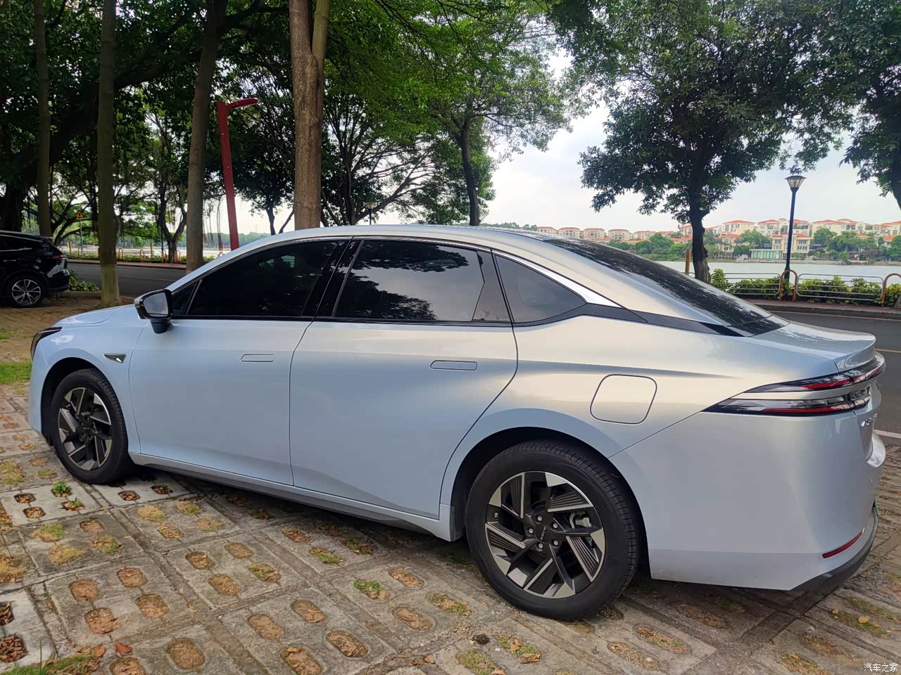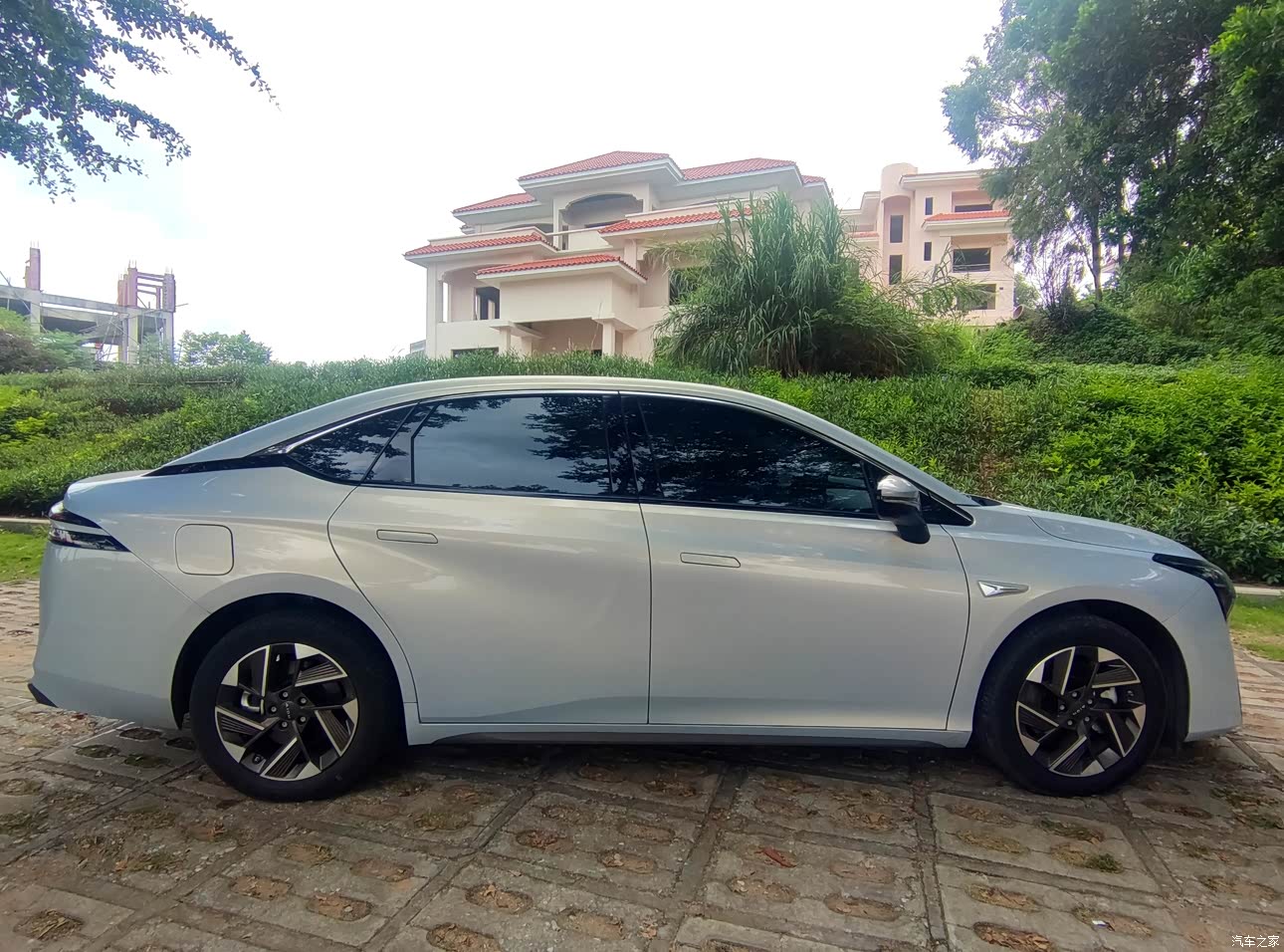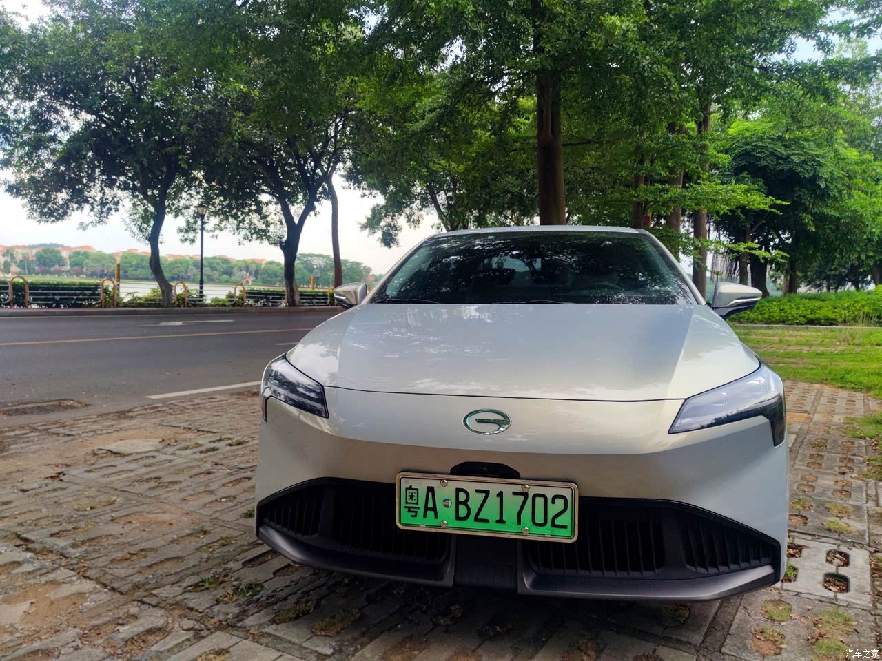 家里已经有一部燃油车,也是广汽的型号是M6,几年前因为家里人口增多才换的7座车,但平时上下班开它油耗太大了,百公里11个油左右,油箱又小,三四天就得加一次油,不胜其烦,我每天通勤基本在100公里左右,费用又高,于是有了买电车的想法。s plus刚上市的时候去看过那会低配续航400多公里,车价好像是13万多,后来纠结了一下电车不成熟之类的问题,也问了小区物业车库不能装充电桩,然后不了了之,后来两年再考虑已经涨价了,落地得17万左右了,觉得没性价比又放弃了。两年后随着电车慢慢普及,以及各品牌百花齐放,想买电车的欲望更加强烈了,本来想买部小型车城市代步,看了某迪海鸥、海豚、秦puls ev,但是都没看上,某迪的设计都不是我的菜,其他新势力品牌没去看,就怕哪天连售后都没有了,某天在商场经过埃安的体验店,忍不住又进去看一下,销售说这6月买车送全险,上广州牌补贴一万,瞬间又来了兴趣,而且现在最低配续航都510了,配置基本拉满,找时间去门店试驾了一下,全景天幕真的是漂亮,很有感觉,但是晒也是真的晒,接受不了,后来销售说有低配有全景天窗版,有自动遮阳帘,看了一下配置都可以满足我的需求,就选了乐享天窗版。 这车最满意的还是外观,还有全息银的车漆,随光线变化而变化,虽然这款车用来跑网约车的很多,无所谓啦,能用来跑车说明它耐用,以前大众捷达和桑塔纳还不是出租,一样不影响大家买来家用,另外空间也挺满意