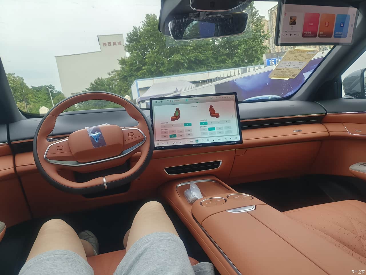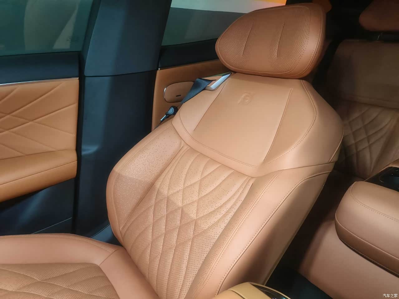 中控扶手箱下方掏空设计,副驾屏设置在遮阳板处方便零重力模式观看,座椅宽大舒适,包裹性强