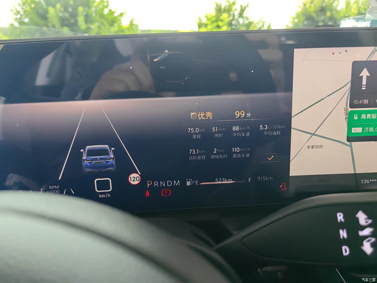 高速自动巡航到110公里,油耗5.3,对于这么大的车应该很不错了。