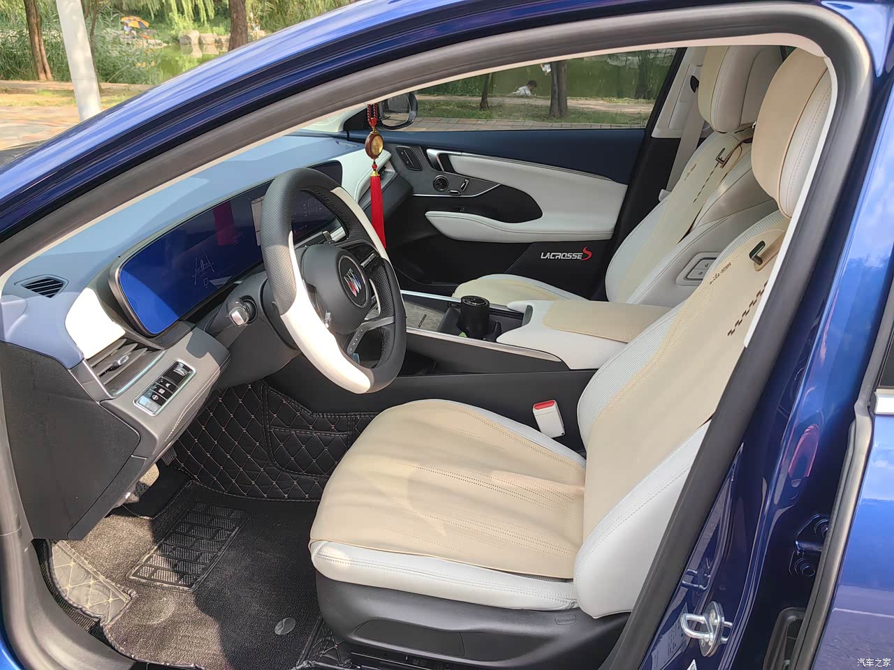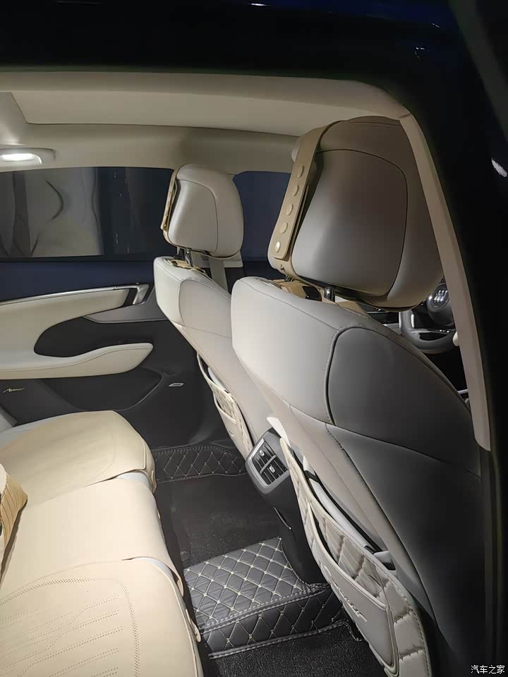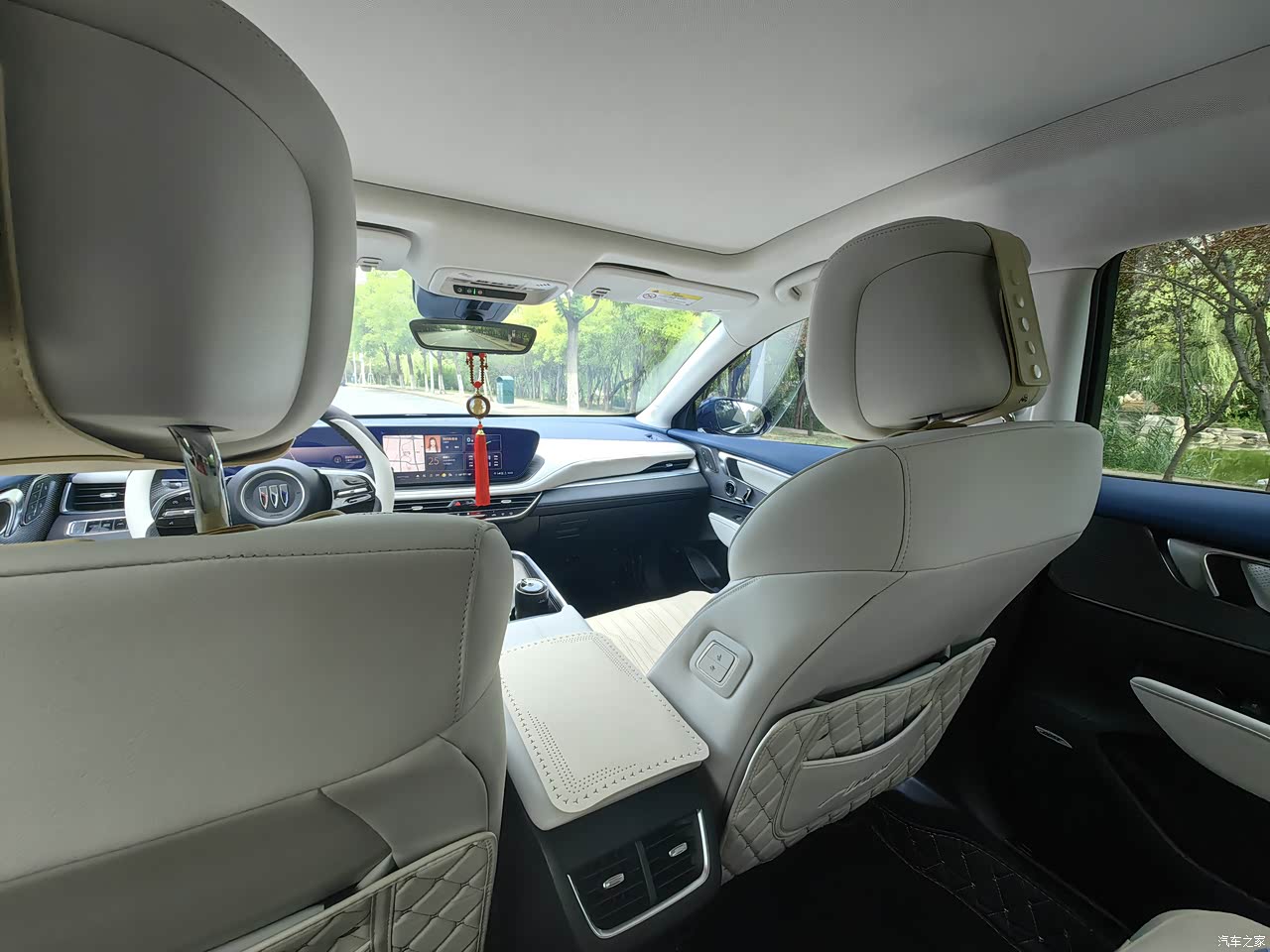 全新君越的内饰颇有新能源车的味道,尤其是中控30寸弧面6K屏,采用一体式设计,内置高通骁龙8155芯片,操作体验如行云流水。我买的是艾维亚版本的经典蓝白内饰,中控台大面积的软性材质覆盖,以及细腻的皮质包裹,激光拉丝工艺饰板的应用,再加上蓝白的双色混搭,每一个细节处理都彰显豪华优雅。一体式环绕座舱,悬浮式中央扶手台设计,保留了相当一部分的实体按键,非常实用,加上121色流光溢彩氛围灯、Bose沉浸式立体音响系统,每一个细节处理都彰显豪华优雅。“四大天王”座椅,前后排四座均配有加热、通风和按摩功能,乘坐舒适性非常好。后排的隐私玻璃拥有更好的私密性。缺点是后门没有氛围灯,可能是怕影响商务性吧,其实应该后门也装上氛围灯,不喜欢可以从后座关闭,这样就更人性化了。