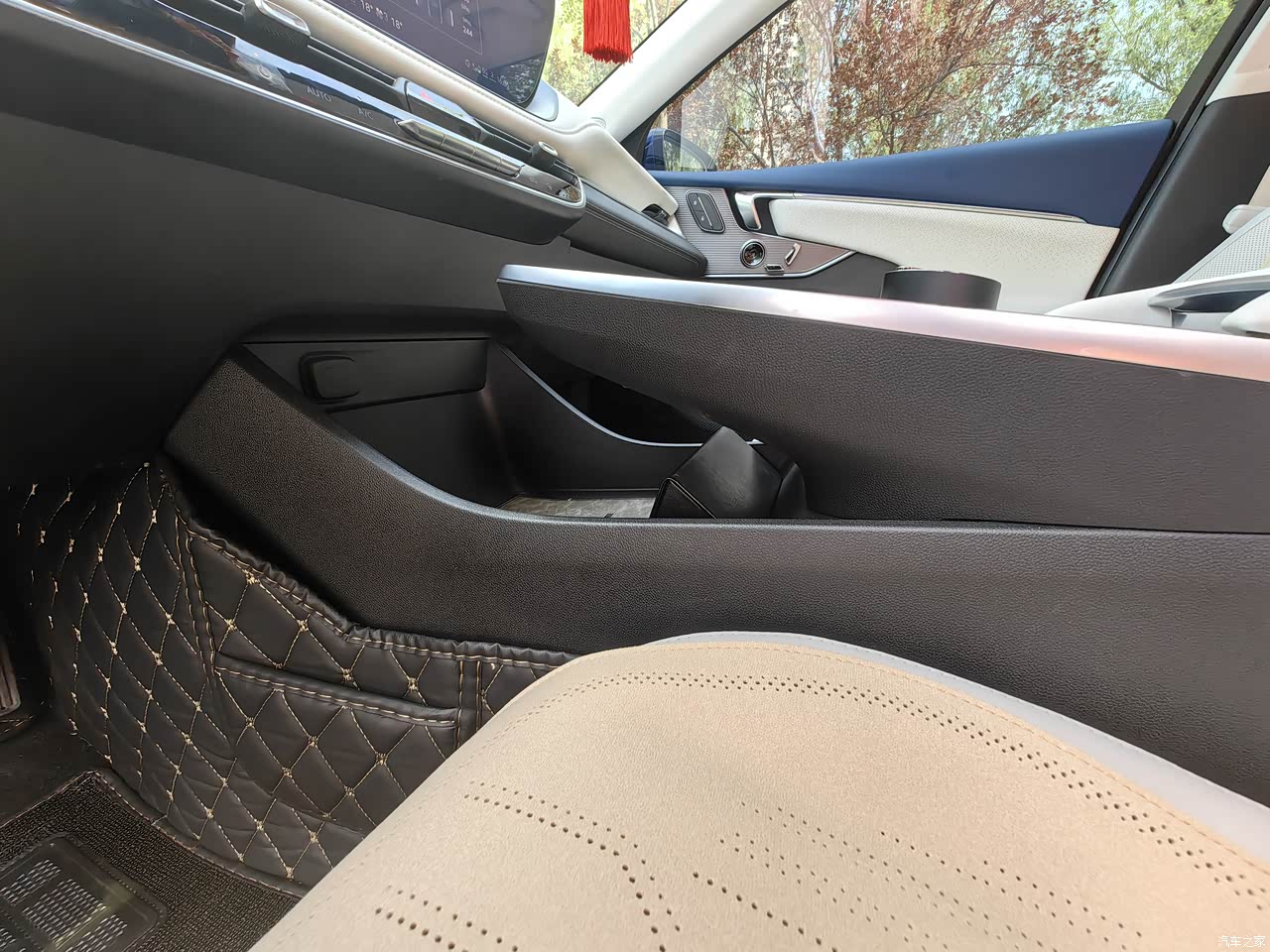 车门扶手处空间充足,可以放矿泉水、雨伞什么的。