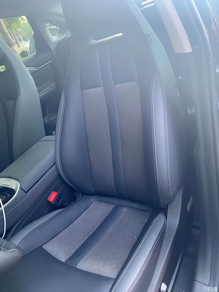 座椅的皮质,不会太软和太硬,手感摸起来挺不错。不过空调制冷的风声,有点吵,你开得越低,声音越大。