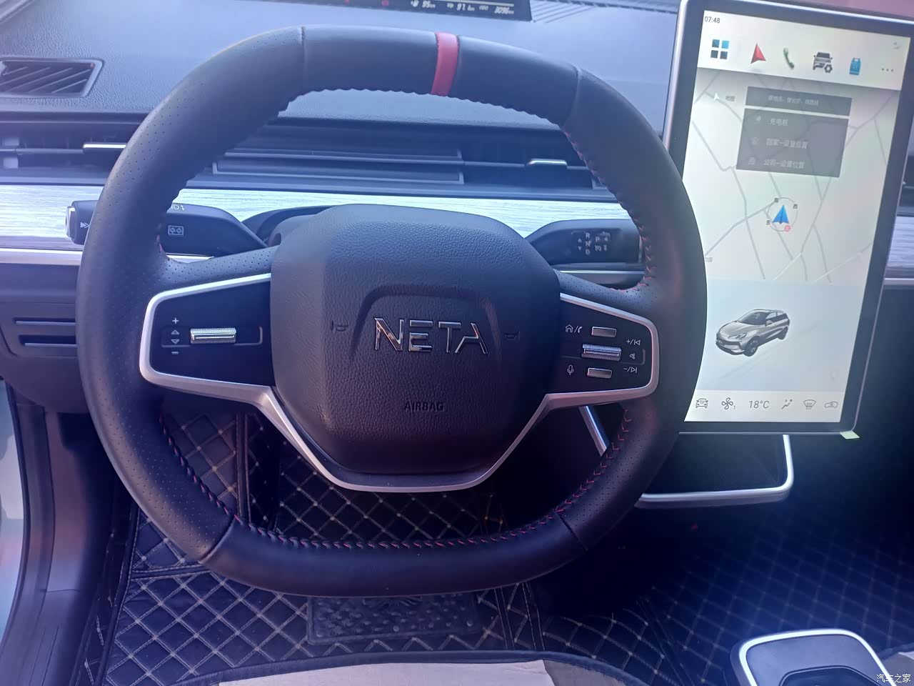 哪吒V的内饰塑料感居多,比较简单,但是方向盘和座椅是皮质的,手感还是不错的,因为价格在这呢,咱也不能要求太多对不。我感觉阅读灯比较人性化,操作简单,亮度还高,晚上使用非常方便