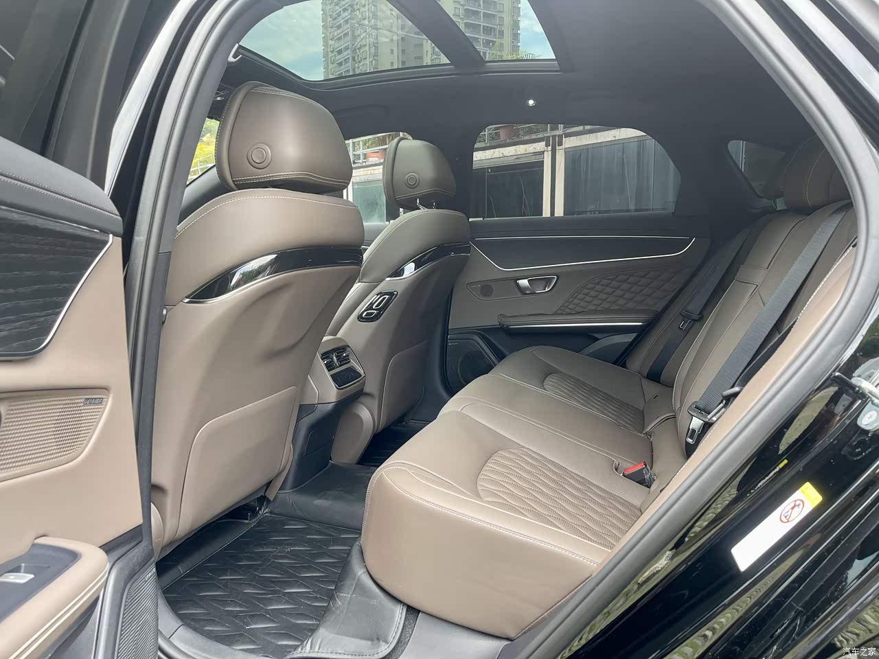 汉的空间非常大,这是我买它的原因之一。我身高172cm,前排舒适位置下坐到后排,腿部还有3拳左右的距离。