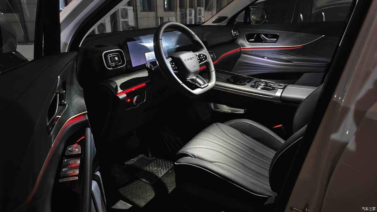 氛围灯目前我只看到两种颜色,蓝色和红色,但是足够绚丽,搭配内饰风格,非常有合资车的那种高级感