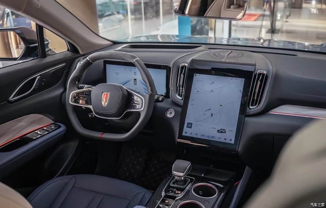 车子的内饰看起来很规整,整体感觉内饰的条理性做得不错,给人一种清爽的感觉。从另一个角度来看,这个细节也很好的丰富了车子的元素。中控屏幕清晰流畅。挡杆精致,高级感和诚意十足,很喜欢这种设计。