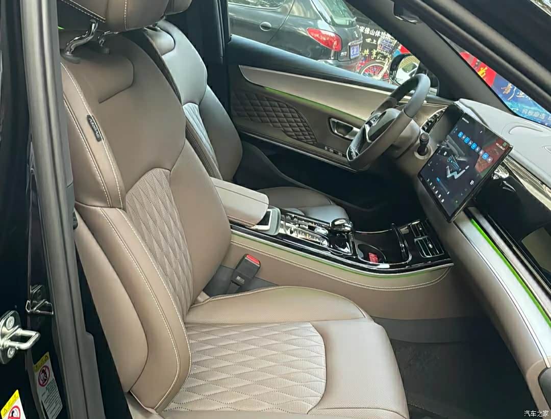 这辆车座椅的皮质材料真的是太好了,非常的柔软舒适,中控大屏尺寸很大,而且还可以语音控制,车内功能也比较丰富,空间也不错,舒适性很高。