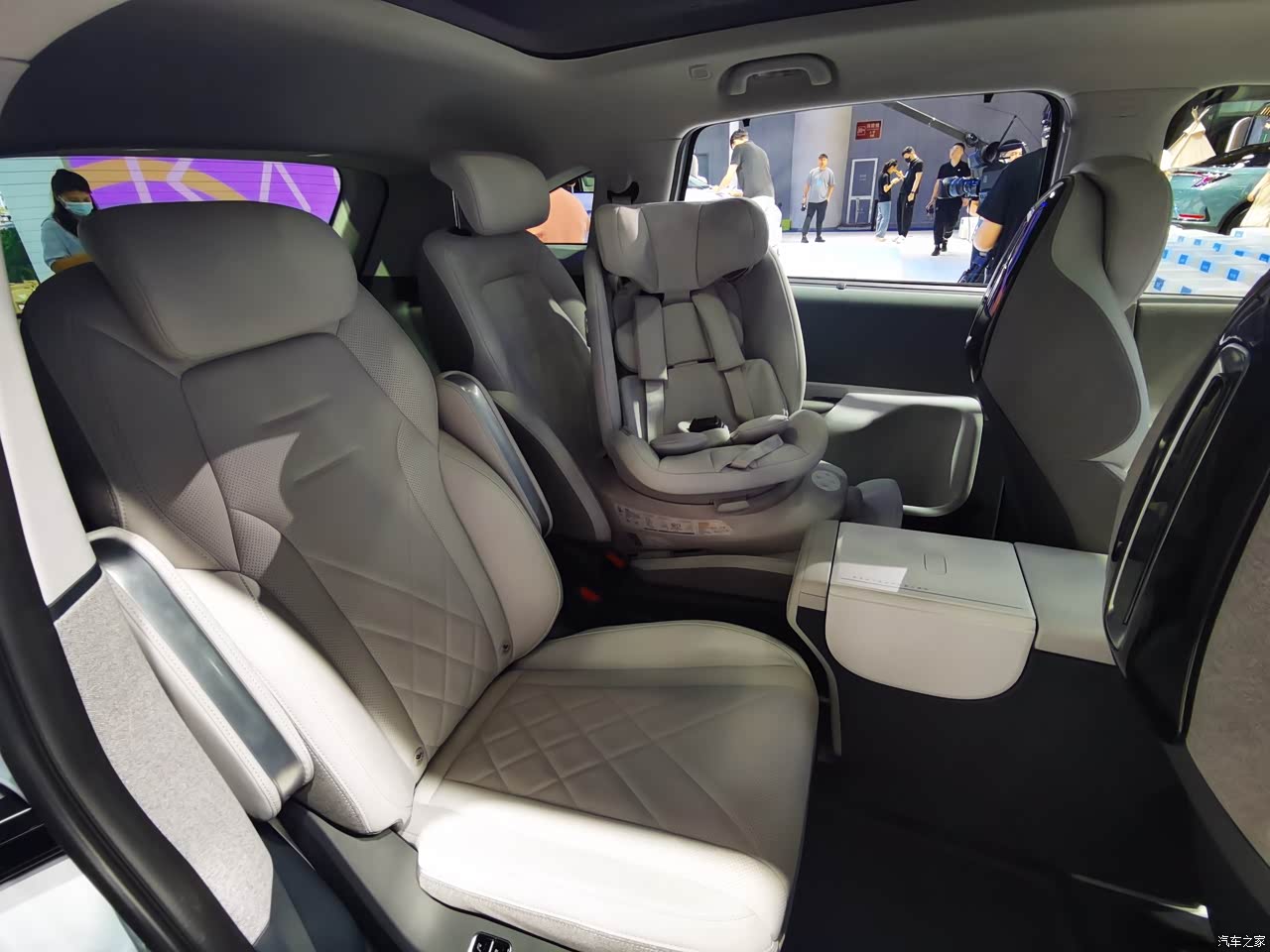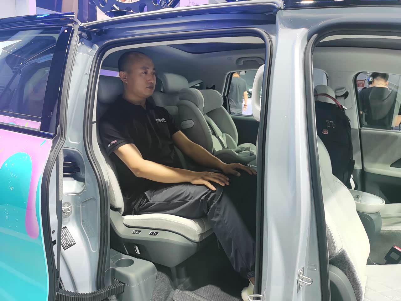 从展车来看功能配置并不低,像电动座椅、电动尾门、中控大屏都有了,同时还有很多针对亲子的专属功能,比如说宝宝哭闹抚慰、5L的冷暖箱、体检提醒啥的,只是现场没能一一体验,有点遗憾。还有就是未来将推出智驾版本,可能也是采用华为的方案吧,还是挺让人期待的。