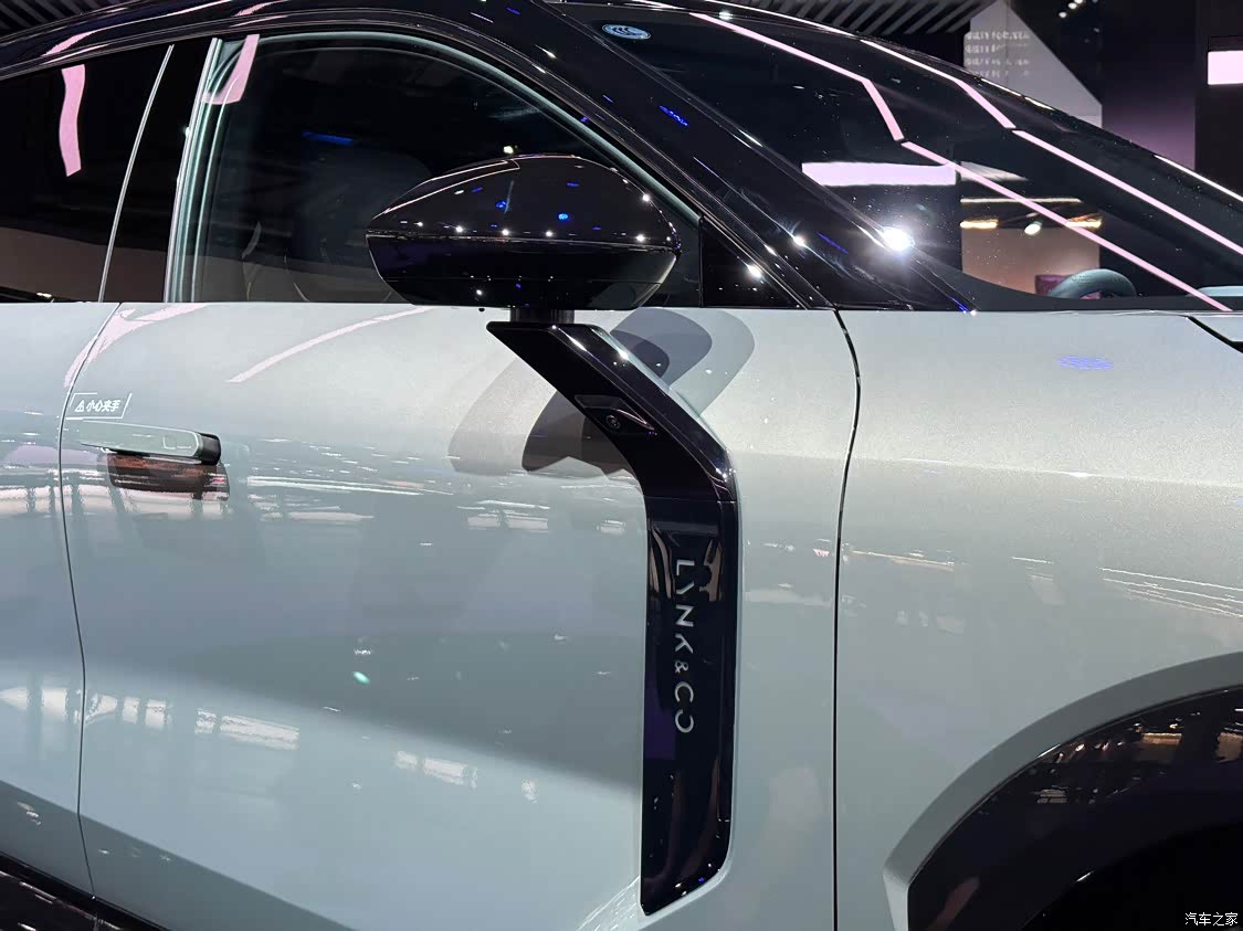 (1)据说领克08是领克品牌基于全新都市对立美学设计风格的首款车型,外观的辨识度非常高。车头的大灯采用分体式+贯穿式的设计,融合了当然非常流行的两种大灯设计语言。封闭式的前脸设计,也是当下插电混动车型常用的设计语言,让人一眼就能看出这是一台插混车。 (2)来到车身侧面,黑顶的设计搭配无框车门和隐藏式门把手,营造的运动感非常强。 (3)前车门的造型非常独特,有种超级跑车的即视感。车尾采用当下非常流行的贯穿式尾灯设计,与车头的灯组形成前后呼应的视觉效果。