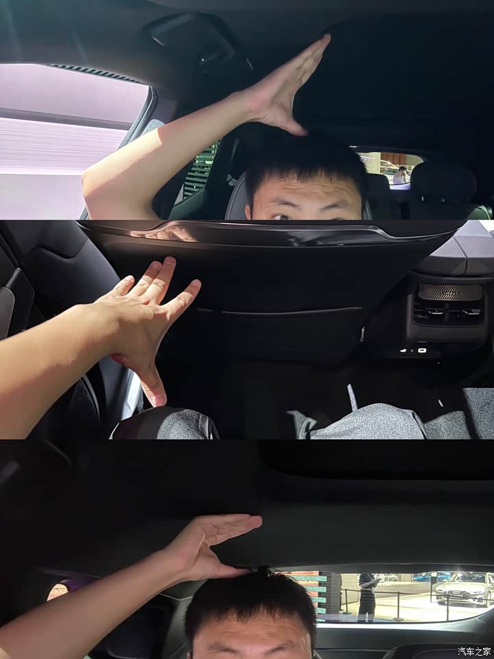 领克08的车身长宽高为4820mm*1915mm*1685mm,轴距为2848mm,定位中型SUV。因为全部都是5座版本车型,所以车内的驾乘空间和储物空间都是相当不错的。本人身高172厘米,体重70公斤,坐进车内将前排调整到舒服的驾驶姿势后,将座椅放到最低,头部还有2拳的空间。保持前排座椅不动来到后排,后排的腿部有接近3拳,头部有1拳。因为领克08的尾门有一种掀背式的设计感,所以会一定程度上影响后排的头部空间。