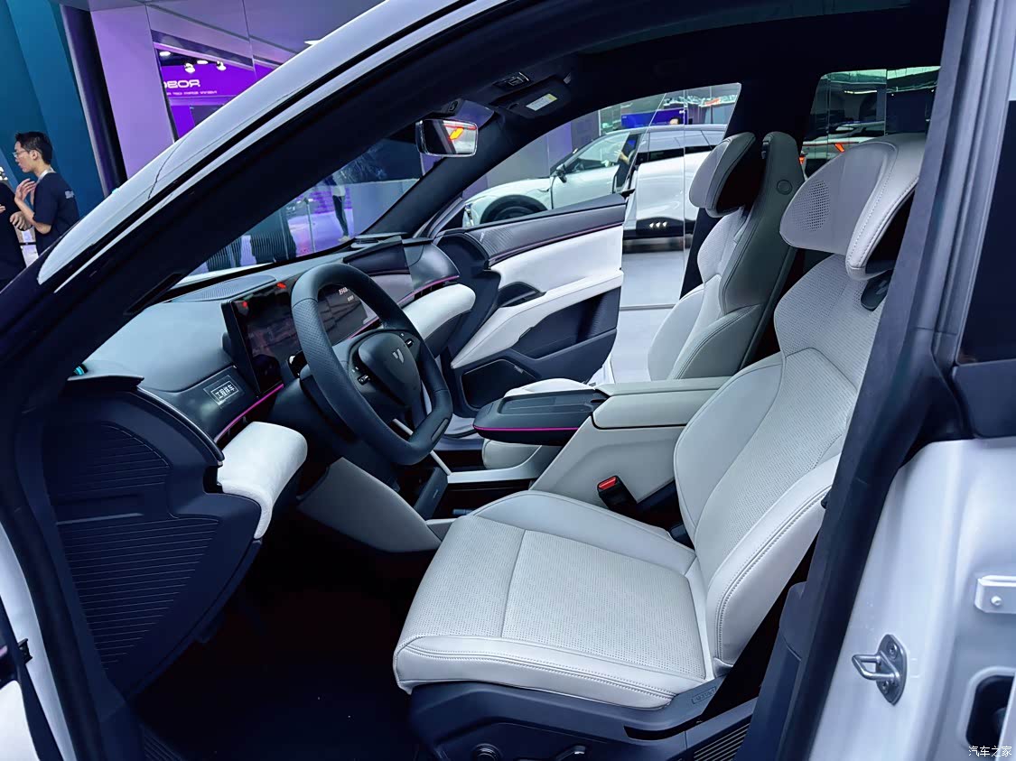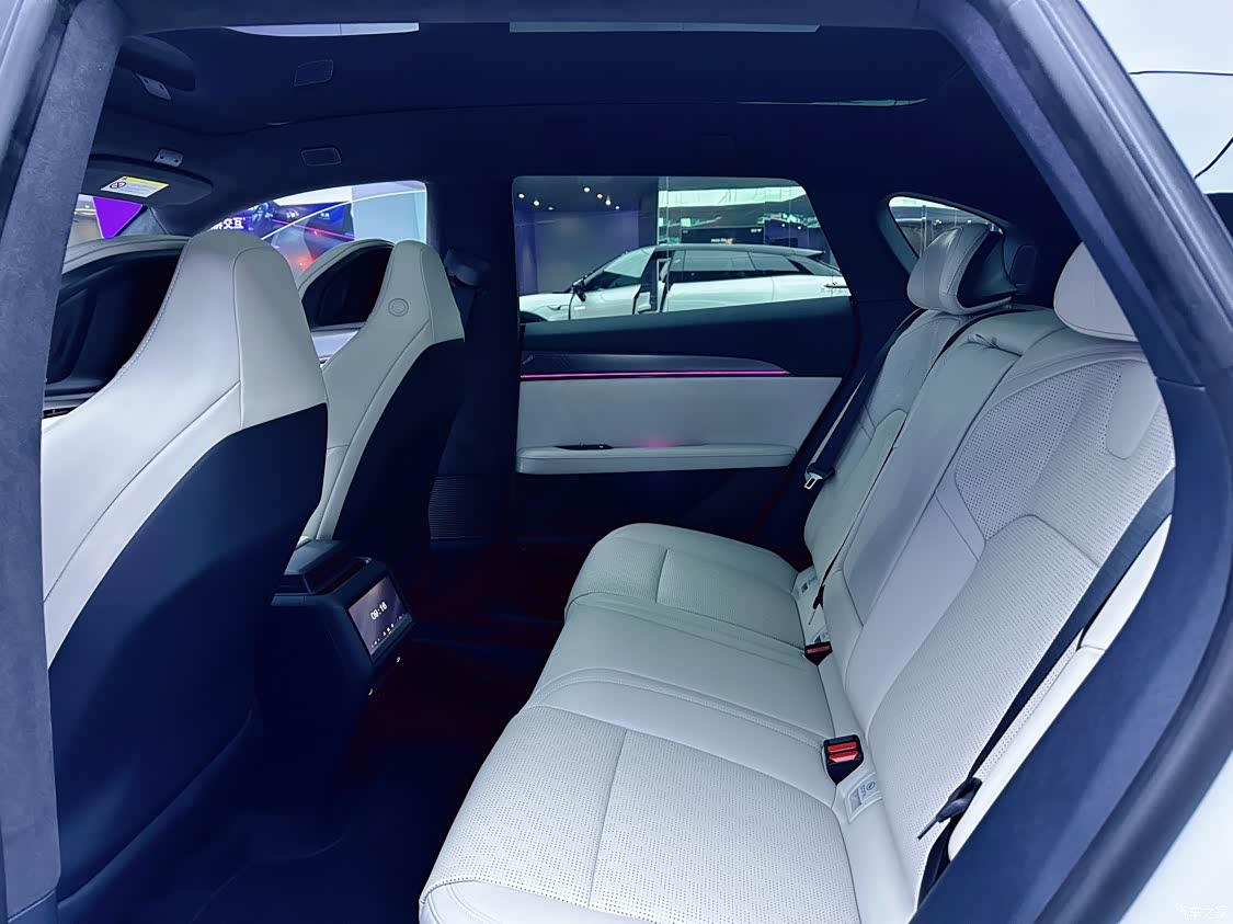 车内的内饰整体感觉也是很简约大气的,车内用了大量的皮质包裹,让车内能触摸到的地方都是很舒服的。座椅的材质也是很扎实的,坐上去的支撑感也是非常强的,头枕上还配有多媒体音响还是很不错的。车内的长连屏也是让车内科技感提升的一大利器,虽说现在中控操作系统还不是量产版本,但是使用起来的反应速度和流畅度都是不错的。