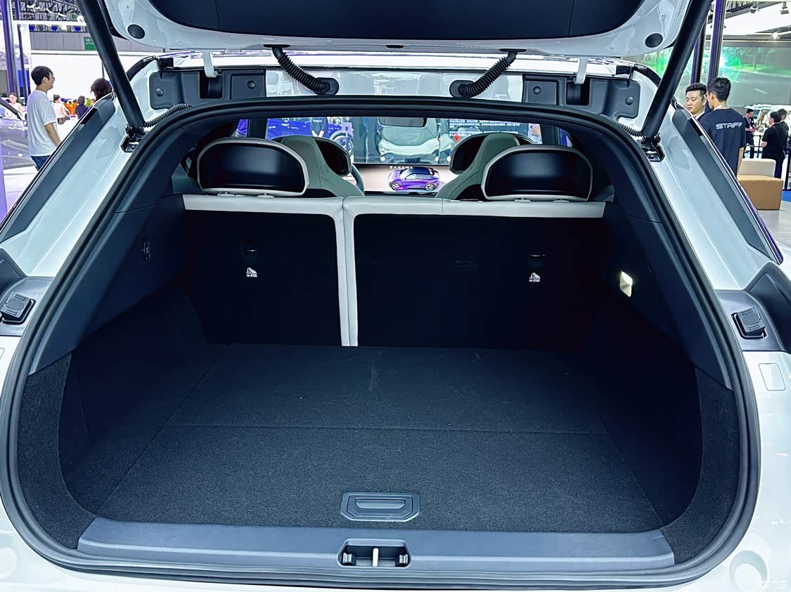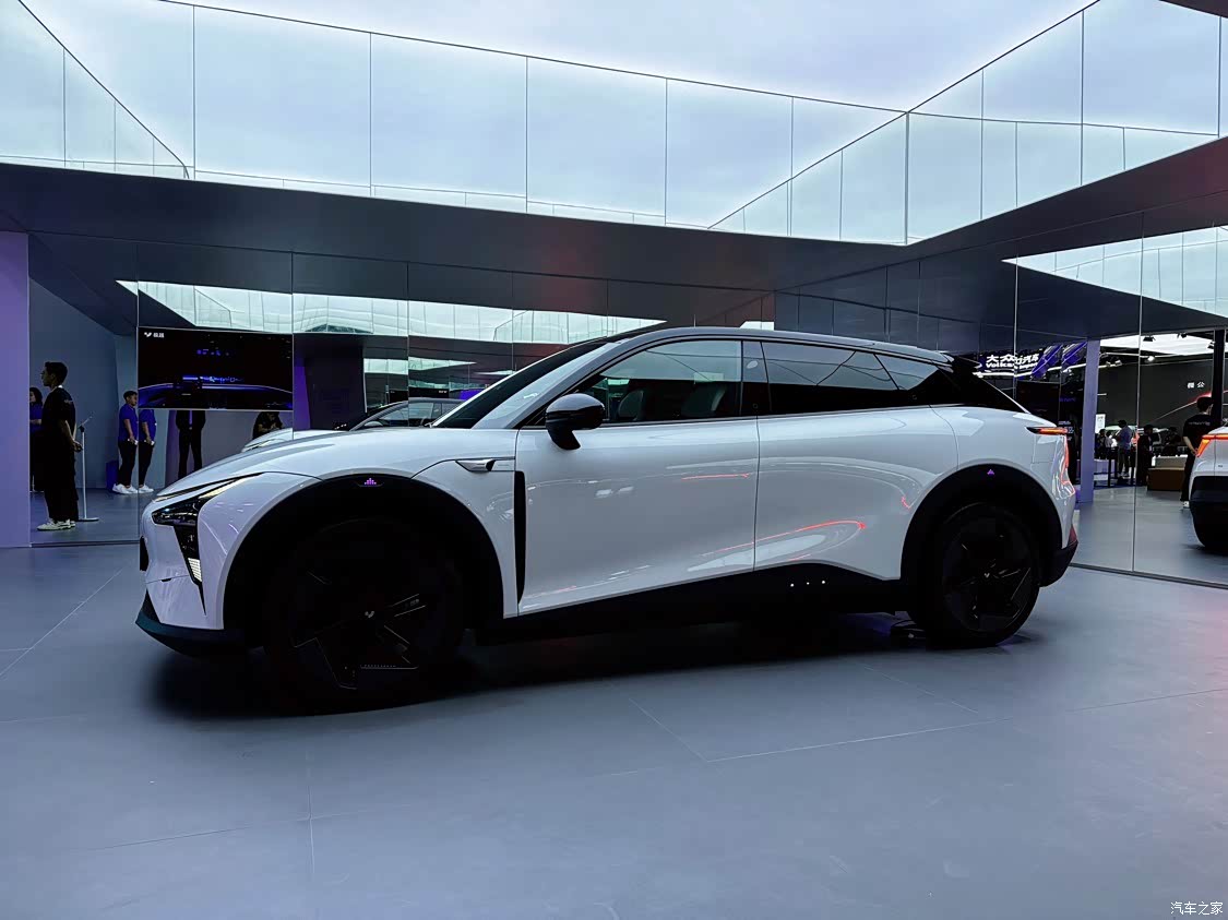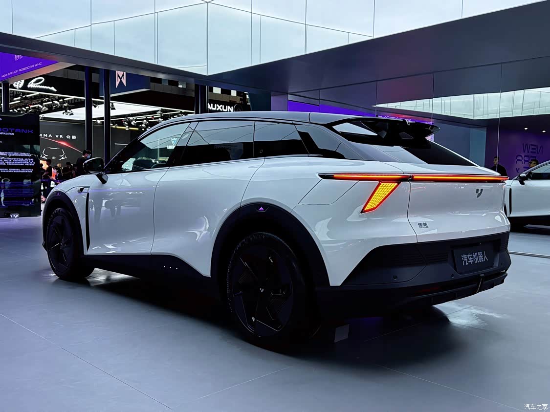 这台车整体外观还是很圆润饱满,车的外形保留了概念车的封闭式进气格栅设计。不过,前向激光雷达已经从前机盖上方移至保险杠两侧灯组内部,同时全车还有多个超高清摄像头、超声波雷达、毫米波雷达,可提供最大360度全包围的自动驾驶感知系统,再加上无边框的车窗让整车都看上去是非常的科技和具有未来感的。
